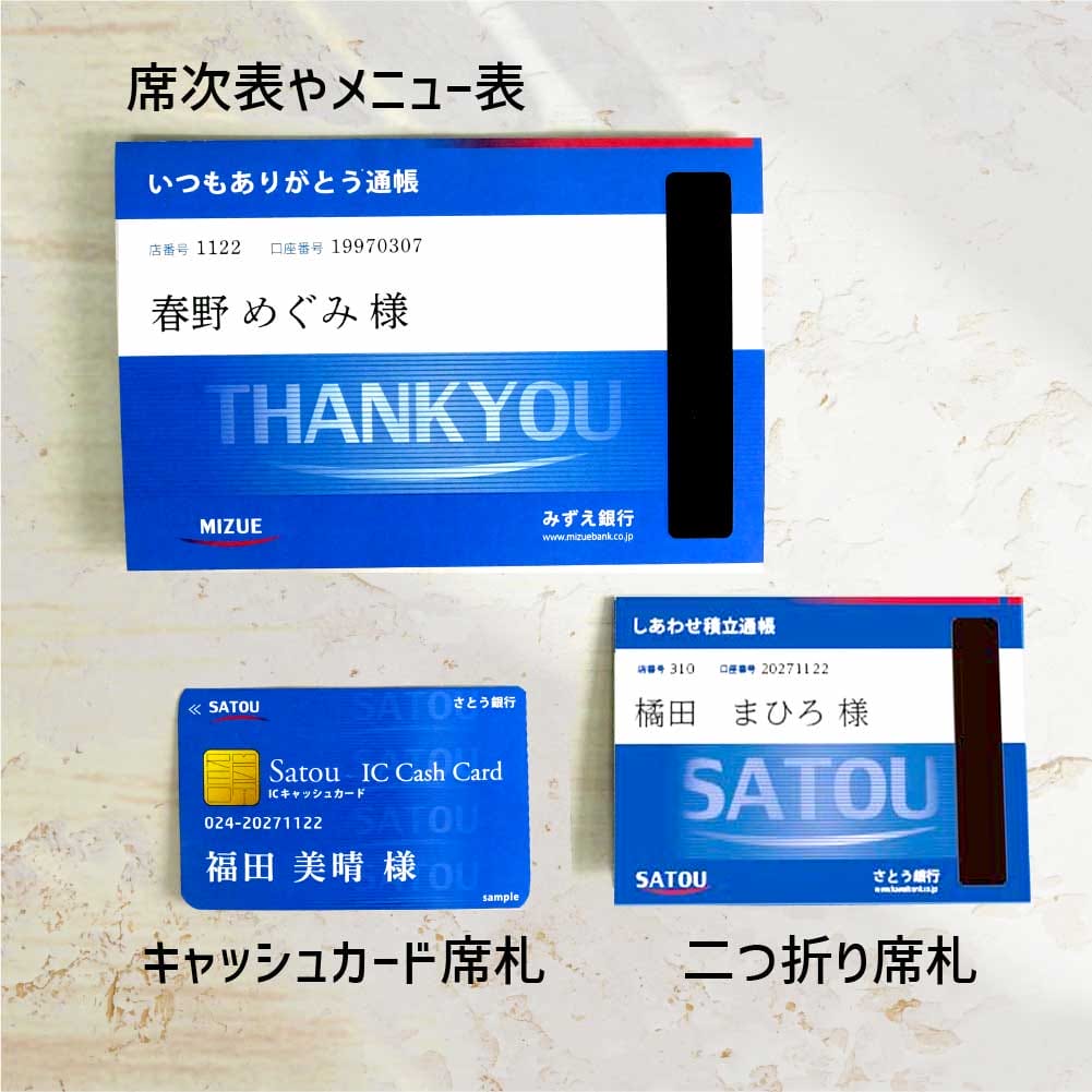 銀行員さん必見!プロフィール入りの席札??大人気の銀行通帳アイテムに新しいアイデアが追加しました!