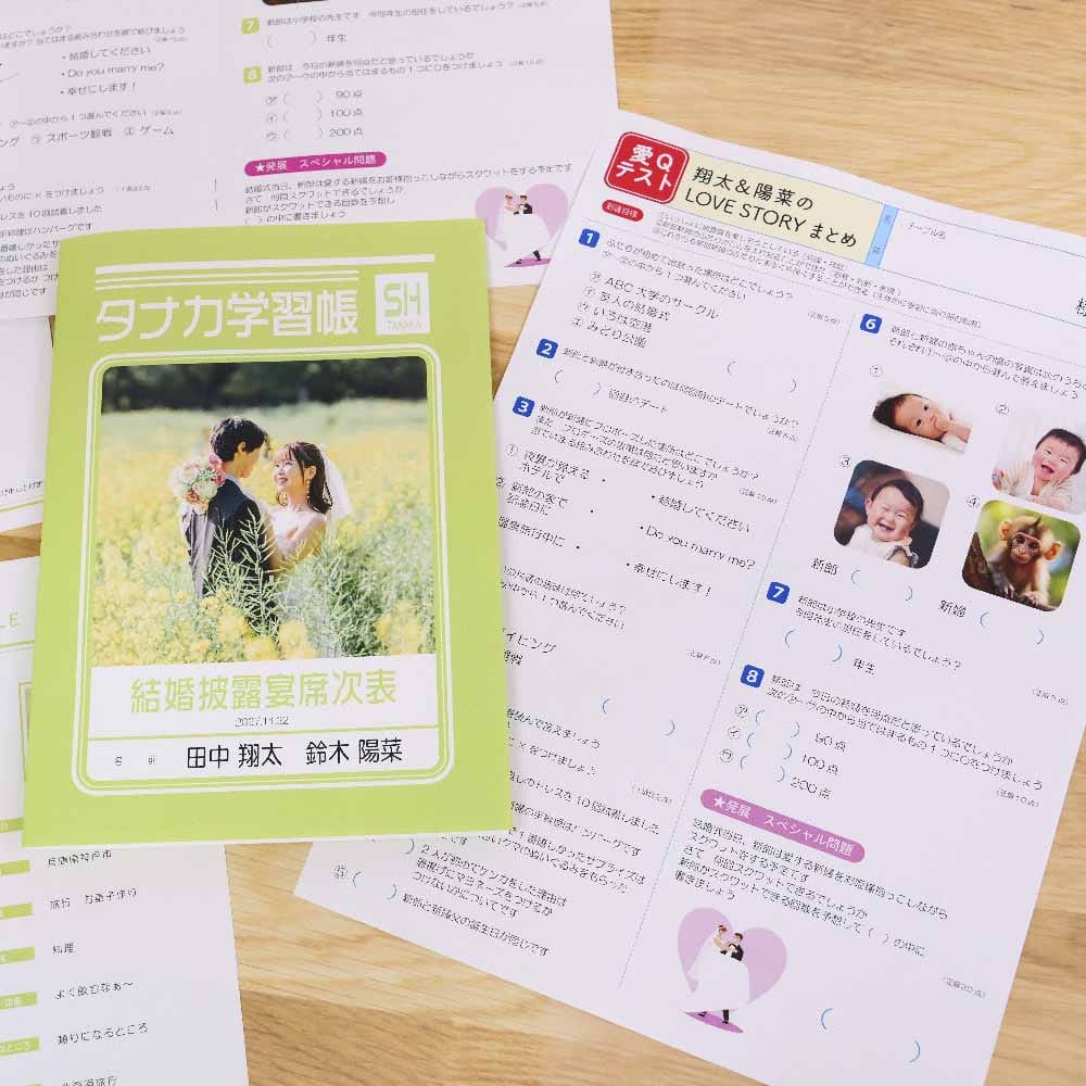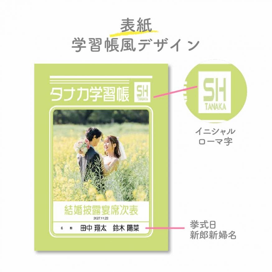 《新郎新婦クイズ付》結婚式の席次表を懐かしの学習帳風にするアイデア!