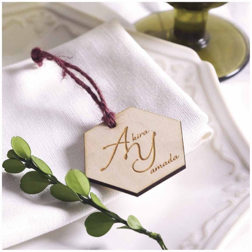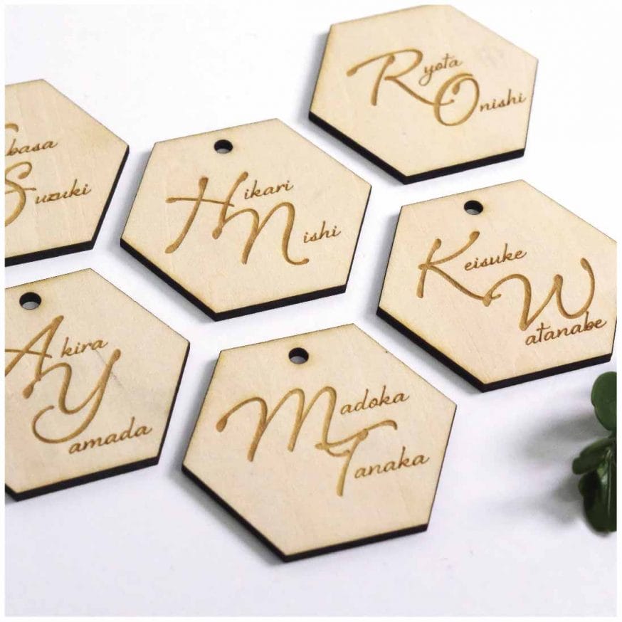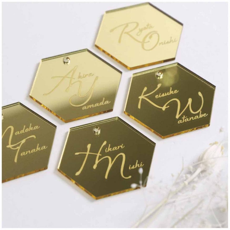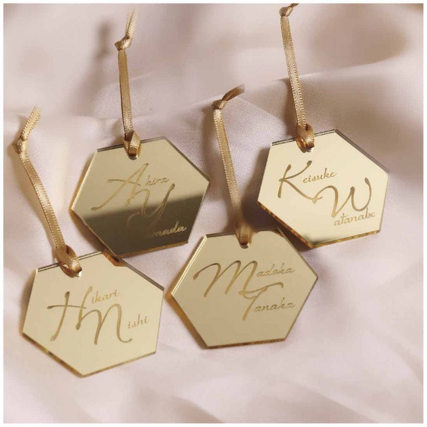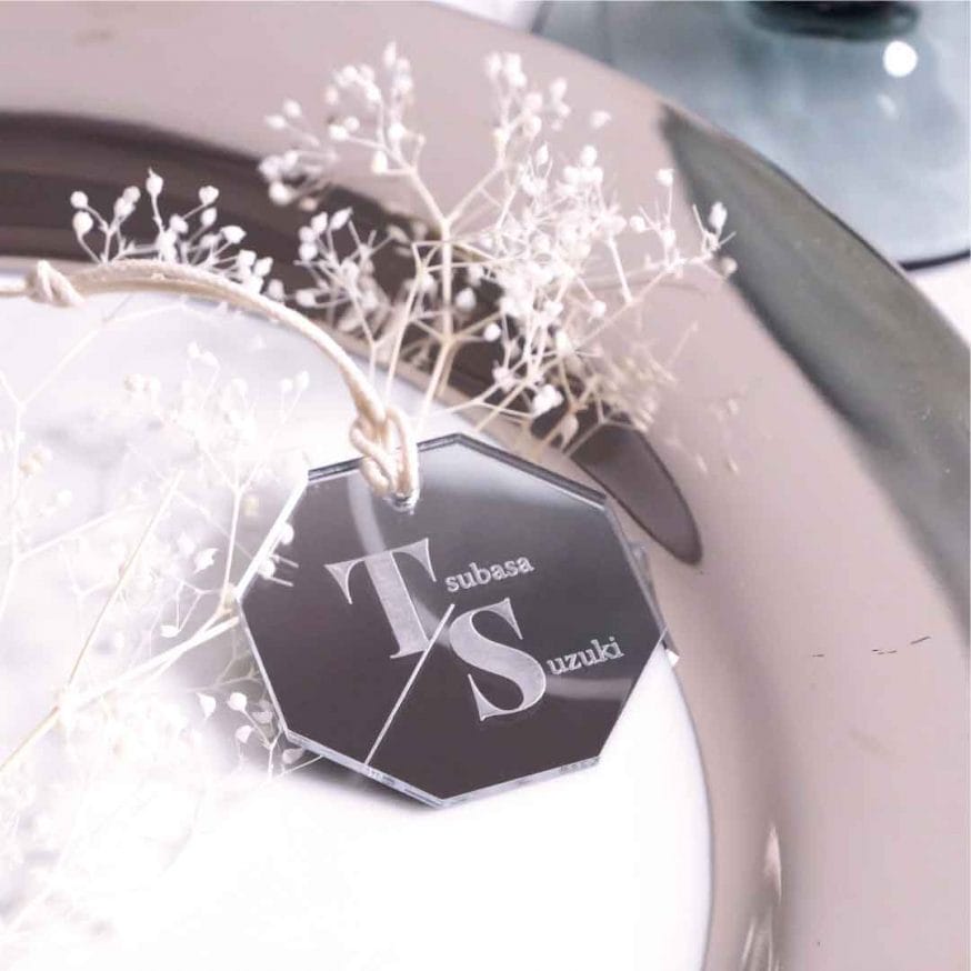 人気のロゴ風デザインで結婚式の席札をもっとお洒落に!ヘキサゴン型/オクタゴン型で作るプレート席札