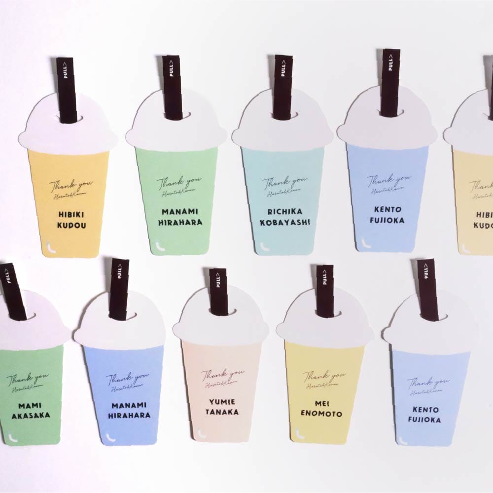 ジュース型がカワイイ!くじ付きの余興にも使えるユニークな席札をご紹介します。