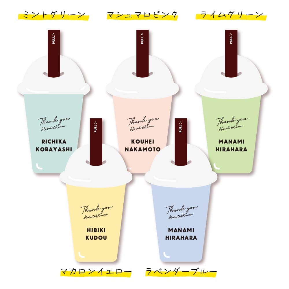 パステルカラーのジュース型のこちらなんと、ゲスト名入りの席札♡ ジュース型がカワイイ🥤