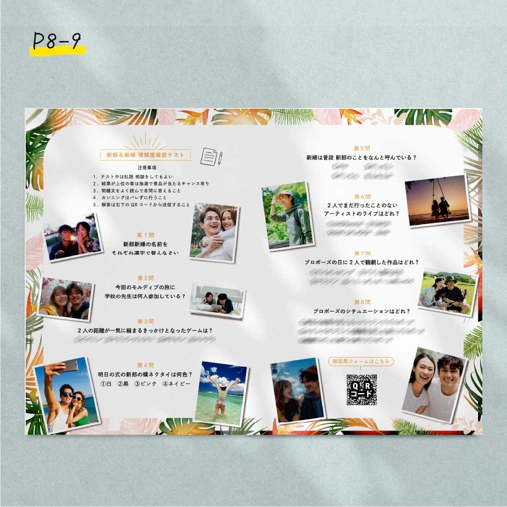 P8-9は、ゲスト参加型の楽しいページ。新郎新婦クイズです📝💯