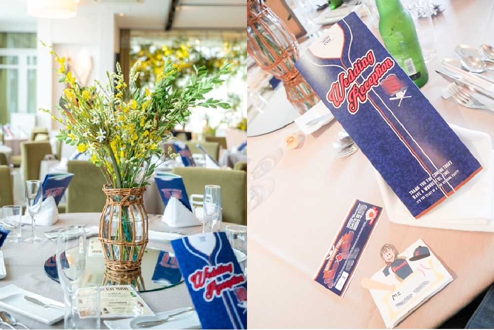 新郎様の草野球チームのユニフォームがどーん!!!!野球アイテムとお好きなキャラクターでコーディネートです。