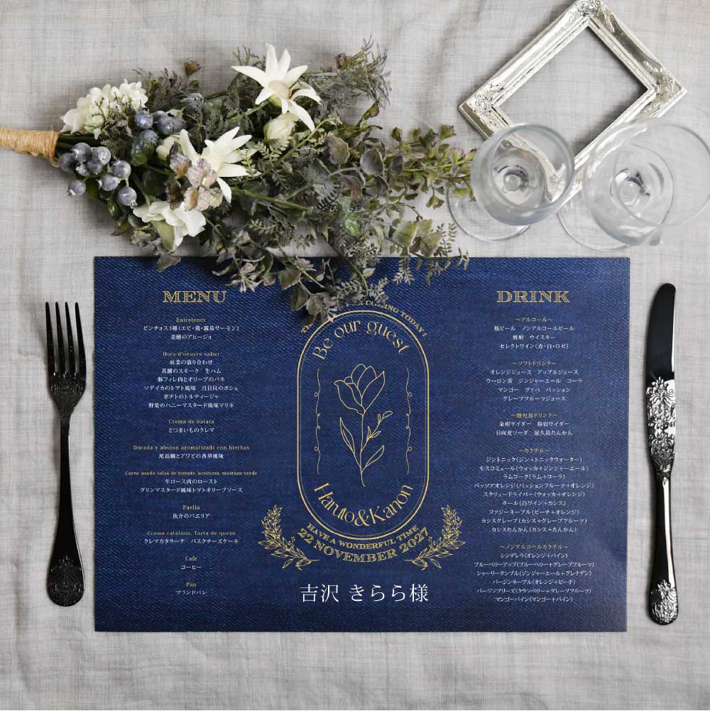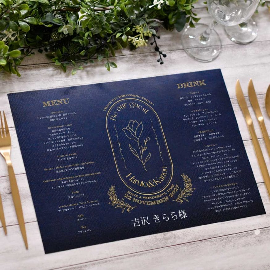 自作のデザインを取り入れた世界にひとつだけ♪これ一つでテーブルコーデが決まる「ランチョンマット席札メニュー」をオリジナルアレンジさせていただきました!