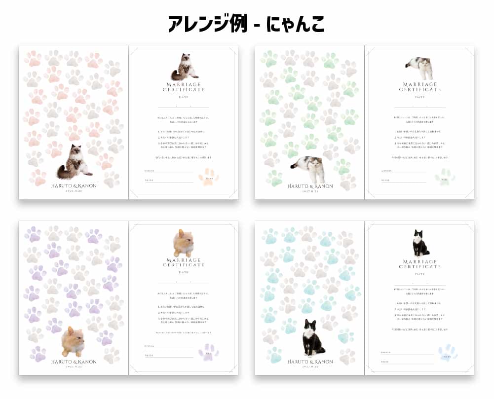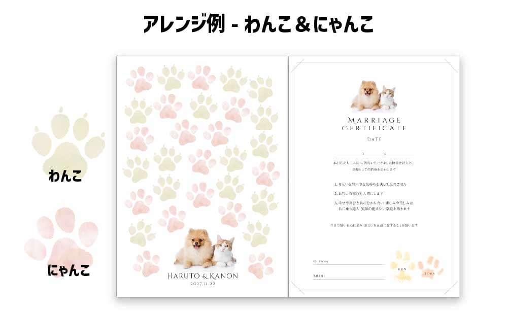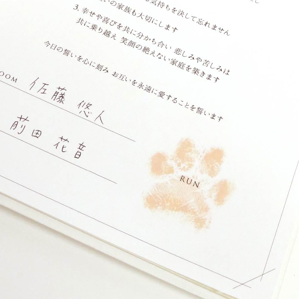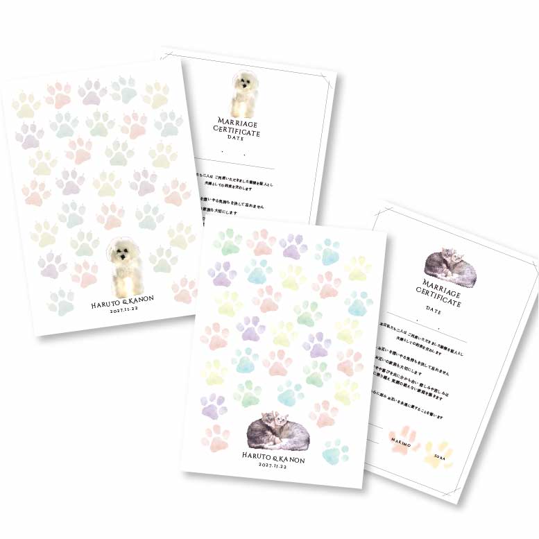 - 愛犬・愛猫が証人の手形入り結婚証明書