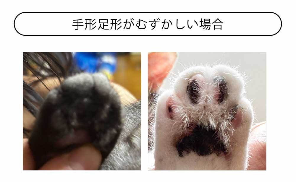 場合によっては手形をとるのが難しいこともあります。その際は足裏の肉球のお写真で対応させていただきます。