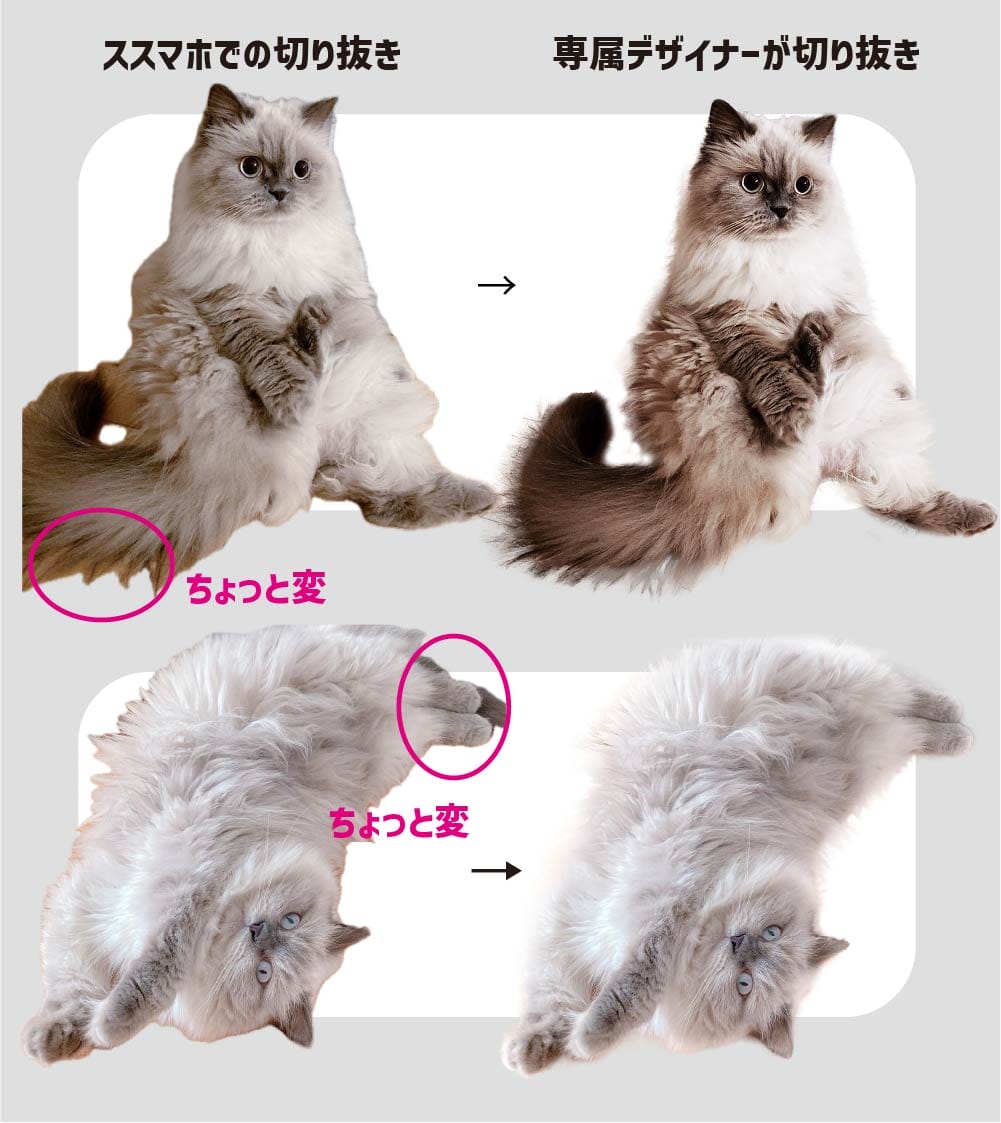 ただし、スマホで切り抜いた画像はなるべく使用せず、切り抜く前の状態のお写真をご用意ください。
