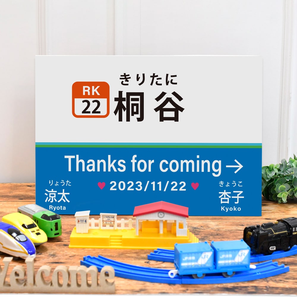①鉄道名→挙式会場名(後ろの寿マークもお入れします)