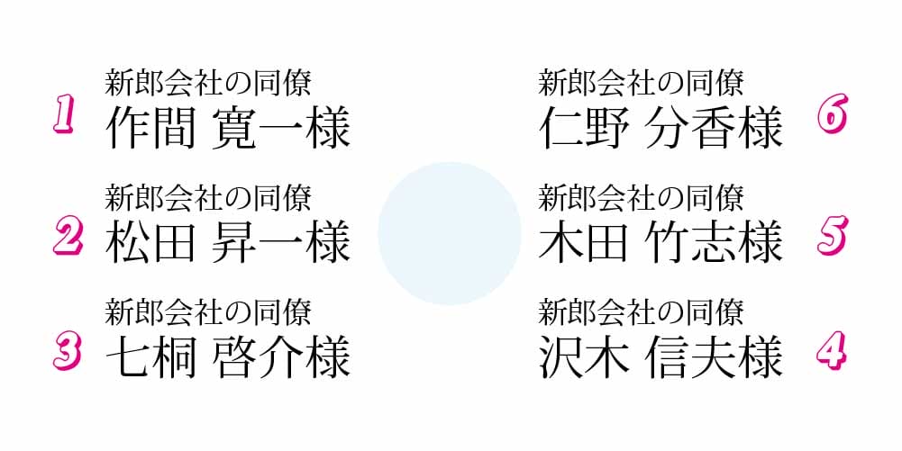 当日席に着くとこの席札が置かれているんです。よく見ると自分の名前が…!?ナニコレ??
