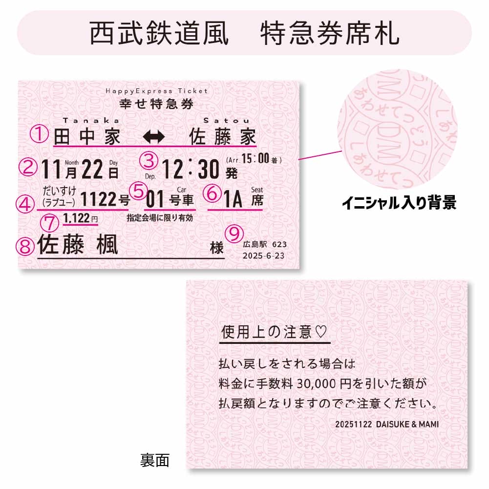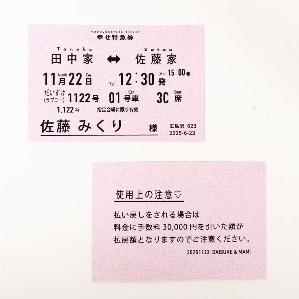 しあわせ鉄道が発行するお二人だけの特急券というプレミア感✨