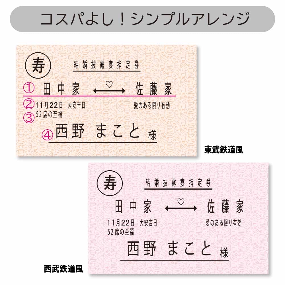 鉄道ファンなら一目で分かる!?激レアな特急券(切符)風アレンジの席札。今回は東武鉄道と西武鉄道の2種をまとめてご紹介します。