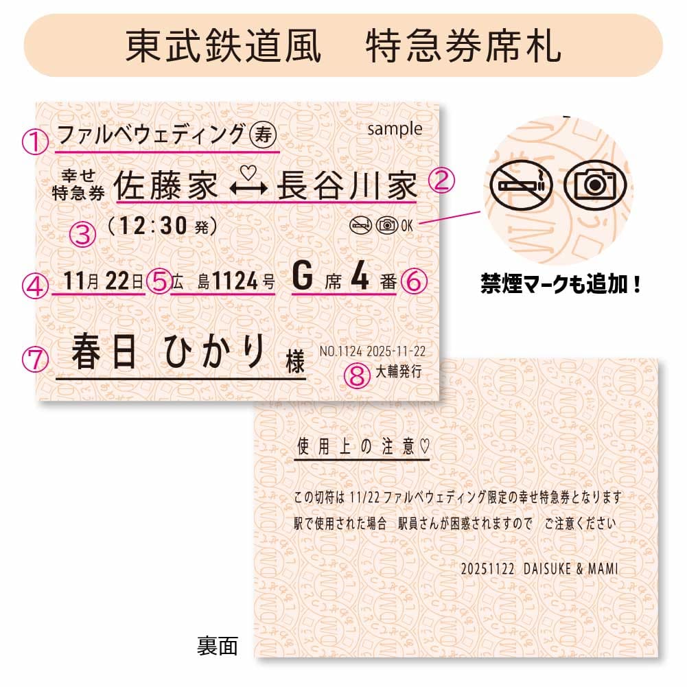 裏面もしっかり切符風アレンジでおもてなし😘