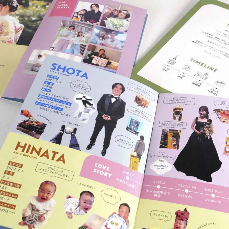 多く詰め込みすぎるとごちゃごちゃしてしまうため、入れる写真の枚数なども慎重に決めました。ここまで決まれば、後はスケジュールに沿って準備を進めるだけです!内容がまだ決まっていなかったので、お二人も一安心(´ω`)