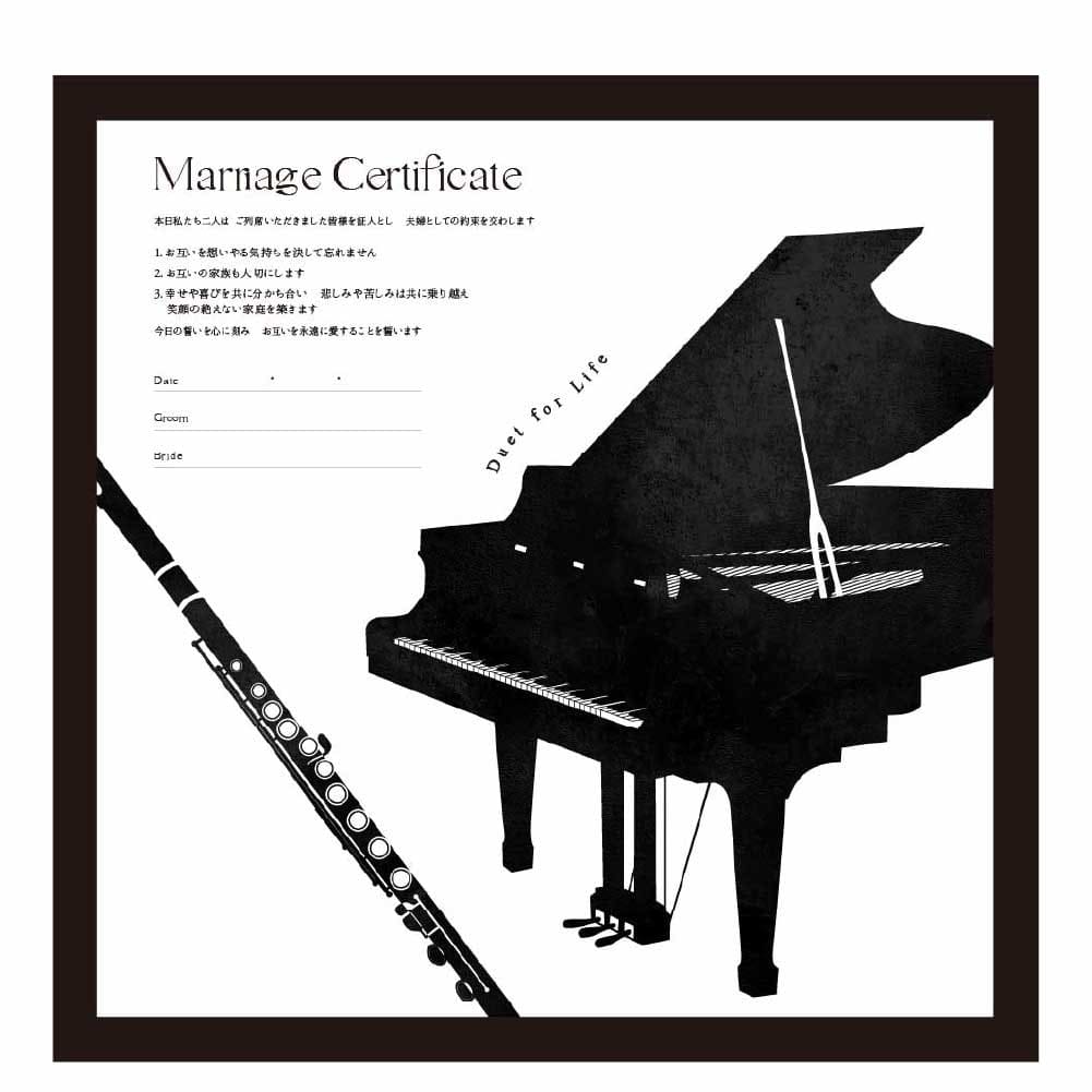 演奏家カップルさんって割と多くない?の一言から、楽器と楽器コラボさせてもいいよね!ということで、派生して生まれた結婚証明書のご紹介です。