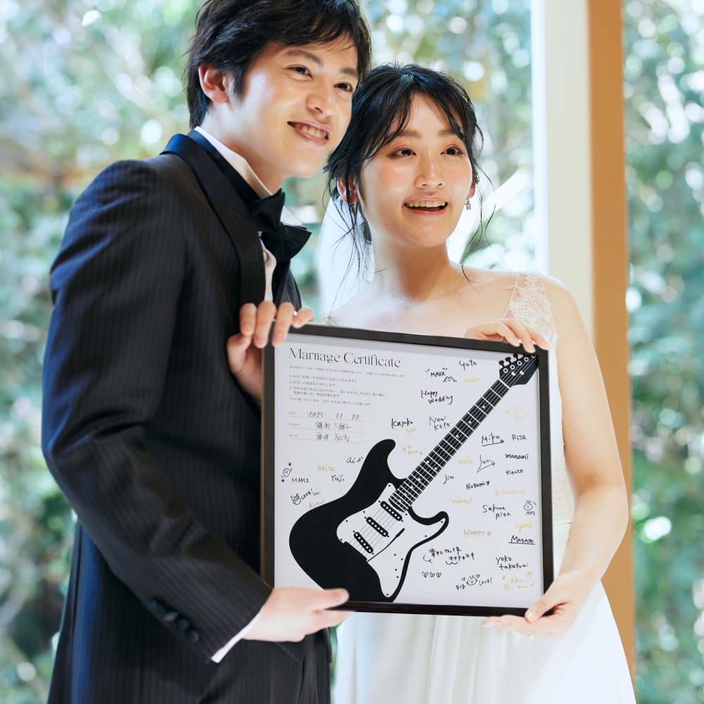 ちなみに、「楽器(music)結婚証明書」は、ゲスト参加型のサイン入りアイテムとなりますが、楽器を組み合わせてももちろんサインは可能です!