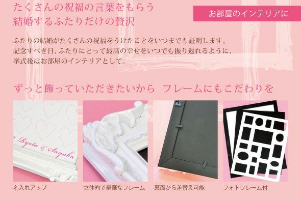 画像拡大 「寄せ書きウェルカムボード」Piece of Heart(80名用)結婚式 (0) 商品番号 MWB-POH8 販売価格 ¥ 21,340 税込 [ 194 ポイント進呈 ] シートカラー(必須) 選択してください ブラウン ホワイト 新郎様のお名前(例 Tetsuya)(必須) ※ : / ~ などの半角記号は使用不可 新婦様のお名前(例 Kyoko)(必須) ※ : / ~ などの半角記号は使用不可 挙式日(例 20XX.11.22)(必須) ※ : / ~ などの半角記号は使用不可 申し訳ございません。在庫がございません。 お気に入り登録 15,000円以上のお買い物で送料無料未満の場合の送料800円~地域ごとに異なります。こちらをご覧くださいませ 商品についてのお問い合わせ 結婚式の受付をオシャレに演出 「寄書きウェルカムボード Piece of Heart(~80名様用)」 ▼シートカラーは2色からお選びいただけます▼(※シートには80個のシールガイドがあります。) ブラウン 完成例(80名様) ホワイト 完成例(80名様) お届けの内容 ・寄書きウェルカムボード(フレームカラー・・・ホワイト)・ハートシール 80枚※こちらの商品は同梱不可となっております。この商品自体は送料が無料ですが、同時にご注文いただいた商品に関しては別途送料がかかります。あらかじめご了承くださいませ。 シートカラー ブラウン or ホワイト サイズ 470×575×40mm(約A2サイズ) 材質 合成樹脂 名入れについて 挙式日、新郎新婦名(ローマ字)お入れします。⇒ 名入れについて(必ずお読みください)ご注文フォームにご記載ください。(入力された内容がそのまま印刷されます) お届けまでの日数 約2週間頂戴いたします※ただし、振込の場合は入金確認後の発送となります。 お支払方法 名入れ商品につき銀行振込またはクレジットにてお願いいたします※ひとつひとつが手作りため多少画像とは異なる場合もございます※オリジナルアレンジには別途材料費がかかる場合もございます※当日会場に飾るイーゼルなどはご用意ください 【お客様に知っておいていただきたいこと】シートにはシールガイド(寄書き用のハートシールを貼るための枠線)が、あらかじめ80枚分印刷されています。シールが80枚以上になる場合は、ボードをもう一枚ご購入いただくことをおすすめします。 レビューを書く