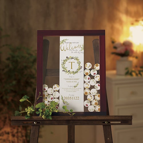 画像拡大 別配送A商品のみ同時購入可 ウェルカムドロップスと結婚証明書をひとつに ウェルカムドロップス承認ボード 55名様対応【別配送A】 (0) 商品番号 kgk17-66-ENB 販売価格 ¥ 27,500 税込 [ 250 ポイント進呈 ] 商品配送の目安 通常 出荷予定 特急対応(有料) 出荷予定 項目を指定してカートに入れる 同時購入&同梱が可能な【 別配送A 】の商品一覧はこちら ▶ 商品合計 ¥15,000円以上送料無料(北海道、沖縄、一部地域除く) 商品についてのお問い合わせ フレームカラー(必須) 選択してください ENB012 ナチュラル ENB013 ダークブラウン ENB014 ホワイト クイックサービス(納期2週間→約1週間で発送)(必須) 選択してください 利用しない 利用する(+¥3,300 税込) 新郎様のお名前(例 Tetsuya)(必須) ※ : / ~ などの半角記号は使用不可 新婦様のお名前(例 Kyoko)(必須) ※ : / ~ などの半角記号は使用不可 挙式日(例 20XX.11.22)(必須) ※ : / ~ などの半角記号は使用不可 新苗字(例 TANAKA)(必須) ※ : / ~ などの半角記号は使用不可 お気に入り登録 1 2 3 4 5 6 7 8 9 10+ カートに入れる 閉じる × ウェルカムドロップス承認ボード〈プロヴァンス〉 ゲストをお出迎えするウェルカムボードと、二人の永遠の誓いを証明する結婚証明書。大事な瞬間をゲストと一緒に体験する、ドロップボードと結婚証明書を1つにした"ウェルカムドロップス承認ボード"。新しい家族としてのスタートをゲストが優しく見守ります。 裏と表で両方使えるスグレモノ 表/ウェルカムボード 裏/結婚証明書(人前式用) サイズ 444×333×22mm 内容 名入れウェルカムボード1枚、結婚証明ボード1枚、承認チップ60枚(55枚+予備5枚入) ※挙式日、お名前が英字で入ります。 ※イーゼル、ペンは付属しておりません。(油性ペン推奨) 納期 約2週間頂戴しますクイックサービスご利用で約1週間で発送 ※ただし、お支払いが銀行振込の場合はご入金確認後の手配となります。 支払いについて メーカー直送品のため代引不可 別配送商品について メーカー直送の別配送商品のため、異なる配送グループの他商品とは、同時に購入いただけません。※他商品と同時にカートに入れると、同時購入不可のメッセージが表示され、ご注文手続きに進むことができませんので、ご注意ください。同時購入&同梱が可能な【 別配送A 】の商品一覧はこちら レビューを書く