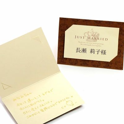 画像拡大 入力印刷付き 入力印刷込「クラウン・ロジェ席札」(10部1セット) (0) 商品番号 OD-C-CR 販売価格 ¥ 2,750 税込 (10枚あたりの価格です) [ 25 ポイント進呈 ] 出荷の目安 ご注文後すぐ素材を提出いただいた場合 通常 出荷予定 特急対応(有料)> 出荷予定 +地域別の到着目安はこちら +商品制作にデータのご提出が必要な商品ですご注文からお届けまでの流れ +特急対応(有料)のご注文はこちら 送料 商品合計 ¥15,000円以上送料無料(北海道、沖縄、一部地域除く) +地域別の送料はこちら サイズ:74×100mm/展開時:148×100mm ロット:10部(1セット10部) 10部未満のご注文は追加の場合も対応不可 項目を指定してカートに入れる 商品についてのお問い合わせ 台紙お届けの状態(必須) 席札を台紙にセットしてorセットしないでお届けどちらか選べます。 選択してください セット希望しない セット希望する(+¥1,100 税込) お気に入り登録 1 2 3 4 5 6 7 8 9 10+ カートに入れる 閉じる × これと似た商品を見る 結婚式席札「クラウン・ロジェ席札 完成品オーダー」(印刷つき) 同じデザインの招待状を見る 同じデザインの席次表を見る 心に残る結婚式を演出する席札、忙しいあなたもまかせて安心プロのこだわり品質 ご注文後の流れ まずはショッピングカートよりご注文を完了してください。その後、専用フォームよりゲストリストのご提出をお願いいたします。 こちらの商品には校正がございません。お客様から頂いた原稿のままで印刷させて頂きます。校正ご希望の方は下記より有料オプションを合わせてお申込みください。 仕上がりイメージ確認オプション 印刷前にお客様の原稿を反映したデザインをご確認いただけるので、安心して商品をお受け取りいただけます。※確認用のサービスとなります。細かな修正には対応できない場合がございます。 仕上がりイメージ確認オプション(席札・エスコートカード用) ¥ 3,300 税込 数量 カートに入れる レビューを書く