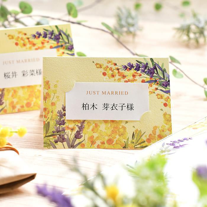 画像拡大 席札DIY手作りセット「ミモザ・ルフレ」(10名様分) 手作りキット (0) 商品番号 hm-c-reflet 販売価格 ¥ 880 税込 [ 8 ポイント進呈 ] 10名様1セット価格です お気に入り登録 1 2 3 4 5 6 7 8 9 10+ カートに入れる 15,000円以上のお買い物で送料無料未満の場合の送料800円~地域ごとに異なります。こちらをご覧くださいませ 商品についてのお問い合わせ 同じデザインの招待状を見る 同じデザインの席次表を見る 結婚式席札DIY手作りキット「ミモザ・ルフレ」 ゲストテーブルを明るく華やかにする席札 愛と幸福を呼ぶとされているミモザと、献身的な愛が花言葉のラベンダーのデザインが結婚式にぴったり!明るいイエローの色使いがゲストテーブルをぱっと華やかにしてくれる席札です。 後姿もぬかりなく!どこから見てもおしゃれ♡ ゲストテーブルに置く席札は向かいの席のゲストから見えるから後姿にだって気を抜けません!背面デザインにまでこだわったどこから見てもおしゃれな席札です。 すぐ届く・すぐ完成、が叶う手作り席札 材料だけの販売だからご注文後すぐにお手元に届きます。1セットで10名様分の席札が手作りできます。 ご購入特典のテンプレートでA5サイズの専用用紙に10名分の席札を印刷。用紙にはミシン目入りで、手でも簡単に切り離せます。台紙の切り込みにセットすれば完成!簡単なのにプロの仕上がりを実現します。 ご購入特典「ルフレ」テンプレートはこちらから 席次表とトータルコーデも叶う! 席札だけでも可愛いけど、さらにお揃いデザインの席次表とあわせてトータルコーデすればもっと素敵に♡ ルフレ席次表DIY手作りセットはこちらから お届けの内容 (1)台紙(10枚) (2)A5ミシン目プリント用紙(1枚) ※1セットで10名様分お作りいただけます。 サイズ 台紙:148×100mm プリント用紙:210×148mm(A5サイズ) 納期 通常3営業日以内に発送予定(土日祝除く) ※ただし、お支払いが銀行振込の場合はご入金確認後の手配となります ご購入特典 商品お届け時に、ファルベのテンプレートサイトのダウンロードパスワードを同梱いたします。ご購入特典としてサイト内の全てのテンプレートをご利用いただけます。 ※ テンプレートはMicrosoft Wordで編集可能です。 一緒に注文しておきたい予備用・追加用アイテム 失敗しても安心! 予備用にもおすすめ 席札の中面に 手書きメッセージを こちらもいかがですか? もっといろいろ比べたい! 席札ぜんぶ見る 席次表も オソロイで♡ 早めに準備しておきたい♡ ご両親へのプレゼント 結婚式での感謝をこめて お礼やお返しのギフトを♡ レビューを書く