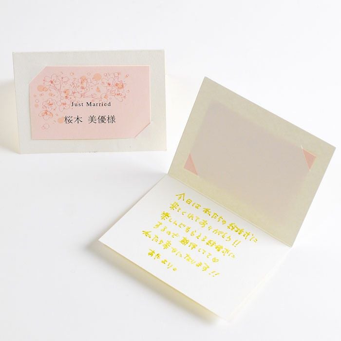 画像拡大 「席札DIY手作りセット」ミニョン(10名様分) 手作りキット (0) 商品番号 HM-C-mingon 販売価格 ¥ 880 税込 [ 8 ポイント進呈 ] 10名様1セット価格です お気に入り登録 1 2 3 4 5 6 7 8 9 10+ カートに入れる 15,000円以上のお買い物で送料無料未満の場合の送料800円~地域ごとに異なります。こちらをご覧くださいませ 商品についてのお問い合わせ 結婚式席札 席札手作りセット「ミニョン」 結婚式の席札、淡いピンクとサクラでお洒落な大人の春を演出。手作りの席札で心に残る結婚式を… ミニョン席札手作りセットのテンプレートはこちらよりご覧いただけます A4サイズミシン目入り席札テンプレート 心に残る結婚式を演出するために、席札を手作りしたい方にオススメです。 お届けの内容 (1)台紙(10枚) (2)A4ミシン目カラープリント用紙(カラー:サクラ 1枚) ※1セットで10名様分作れます ※商品画像イメージはテンプレートを印刷したものでお届けするのは無地のペーパーです サイズ 台紙:148×100mm プリント用紙:297×210mm ご購入特典 商品お届け時に、ファルベのテンプレートサイトのダウンロードパスワードをお知らせいたします。ご購入特典としてサイト内の全てのテンプレートをご利用いただけます。 ※ テンプレートはMicrosoft Wordで編集可能です。 納期 通常3営業日以内に発送予定(土日祝除く) ※ただし、お支払いが銀行振込の場合はご入金確認後の発送となります 失敗しても安心! 予備用にもおすすめ 席札の中面に手書きのメッセージを 一緒に揃えておくと便利なアイテム プリント用紙追加オプション(1枚) ゲルインクボールペン 手作りセット各種オプション レビューを書く