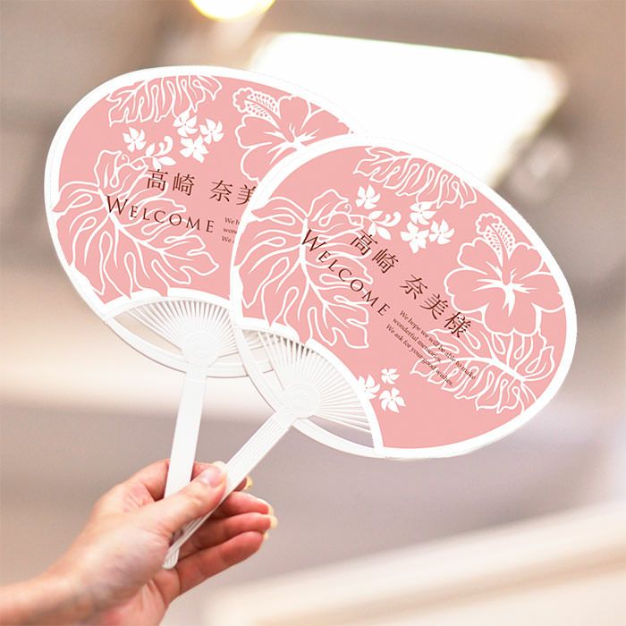 画像拡大 人気の席札うちわ!!! 席札うちわ「アロハ・レア ピンク」(1名様分) (0) 商品番号 UTC-AlohaleaP 販売価格 ¥ 660 税込 [ 6 ポイント進呈 ] 表示は1枚あたりの金額です数量30以上より承ります 新郎様のお名前(例 Tetsuya)(必須) ※ : / ~ などの半角記号は使用不可 新婦様のお名前(例 Kyoko)(必須) ※ : / ~ などの半角記号は使用不可 挙式日(例 20XX.11.22)(必須) ※ : / ~ などの半角記号は使用不可 お気に入り登録 1 2 3 4 5 6 7 8 9 10+ カートに入れる 15,000円以上のお買い物で送料無料未満の場合の送料800円~地域ごとに異なります。こちらをご覧くださいませ 商品についてのお問い合わせ こんな席札、見たことない! ゲストの驚きと喜びを兼ね備えた演出アイテム 夏の結婚式の最強おもてなしアイテム「うちわ」。席札として使ってほしいから、ゲスト一人ひとりのお名前をうちわに印刷しました。優しい色味の上品で大人っぽいアロハデザイン。リゾートウェディングにもぴったり!SNSにアップしたくなる夏アイテムです! ゲストにうれしいサプライズ♡ テーブルの自分の席にこんなうちわが置いてあればビックリすること間違いなし!ゲストも自分の名前入りのうちわだから、夏の間ずっと使いたくなっちゃうはず♡さらにフォトラウンドの際に一緒にお揃いのうちわを持って、はいポーズ!フォトプロップスの役割も果たしてくれます。1本で何役もこなして、お土産にもなる席札です。 お揃いのうちわで会場も盛り上がる♡ 表面にはおしゃれな英文字とゲストのお名前入り!さらに英文字はオプションで自由に変更することも可能。オリジナル感いっぱいのふたりだけのうちわを作れます♡(→オリジナル変更オプションはこちら)裏面にもおしゃれな英文字とおふたりのお名前と日付入り!お揃いのうちわで会場も盛り上がります。 ご注文は30本から1本単位でお受けします。30本未満の場合はロット割れオプションを合わせてご注文いただければ少ない本数でも対応可能です。→ロット割れオプションはこちらから プロに任せて安心!徹底したクオリティのヒミツ 大切なゲストのお名前に間違いがあっては大変!追加料金なしで一度、校正チェックいただくことが可能です。ウェディングアイテム専門店だからお名前の対応もバッチリ。例えば通常入力では出せない旧字体<下が長い吉の字>や<中が黄色の廣>なども問題なし! お名前チェック、文字に応じたバランスチェック、また印刷後も1本1本丁寧に検品して結婚式に間に合うようにスケジュールを立て、ご希望の場所へお届けいたします。 ご注文からお届けまでの流れ Step1: まずは必要本数をカゴに入れてお申込みくださいませ。 ご注文から1営業日以内に在庫を確保し、確定メールをお送りいたします。(件名:〇〇様【ご注文確定】ご注文ありがとうございました[ファルベ]) Step2: 上記メールにてご案内するメールアドレスに席札の原稿を添付してお送りくださいませ。 Step3: お客様に校正原稿をご確認いただきます。OKのお返事をいただき次第、制作いたします。 Step4: 大切に梱包し、発送いたします。 席札原稿の送付方法 オーダーシートを利用する場合:Excel形式のフォーマットをご用意しています。↓よりダウンロードしてご準備ください。原稿受け取りからの納期となりますので、ご注文確定メールが届く前に原稿だけ先にご準備いただいておくとスムーズです。 席札オーダーシートダウンロード スマホから送信する場合:メール本文にゲスト名を入力し送付くださいませ。 ※原稿到着後すぐに準備に入りますのでキャンセルをお受けすることはできません。 ※人気商品のためピーク時(7月~8月)は、品薄になってしまう場合がございます。ご注文の順に在庫を確保いたしますので、ご注文だけでもお早めにどうぞ。 そこが知りたい!席札うちわよくある質問 Q:事前に商品が見てみたい。サンプルは取り寄せできる? A:通常ロット30本からとなっておりますが、サンプルの場合、特別に1本でお受けいたします。 デザインをお選びいただき、ショッピングカートに数量1を入れてご注文手続きくださいませ。その際、通信欄に必ず<サンプル品希望>とお書き添えくださいませ。 サンプルの場合はお名前などはファルベ見本フォーマット通りとなりますので予めご了承くださいませ。 Q:名前を日本語ではなく、ローマ字に変更したい! A:ゲスト名の原稿をローマ字で提出いただければ無料で対応いたします。男性の場合はお名前の前にMr. 女性はMs.をつけて原稿ご用意くださいませ。 Q:Welcomeの文字を違う言葉に変更したい。 A:文字変更や文字削除も可能です。専用オプションを合わせてお申込みくださいませ。(→オリジナル変更オプションはこちらから) 大幅に変更やフォント変更などは上記限りではございません。事前にお問合せくださいませ。 Q:裏にメニューを入れてほしいのですが可能ですか? A:はい、可能です。メニュー追加オプションをあわせてお申込みくださいませ。(→メニュー追加オプションはこちら