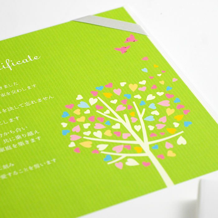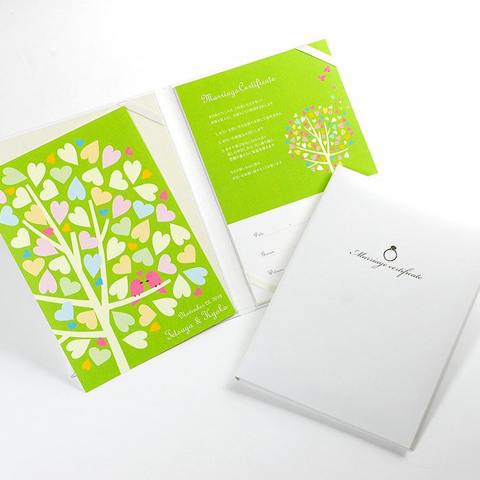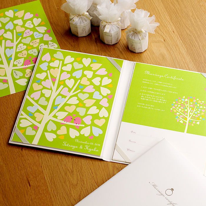 画像拡大 結婚証明書ゲスト参加型「ハートツリーグリーン(50~100名様用)追加可能」 (0) 商品番号 MC-hearttreegreen 販売価格 ¥ 9,130 税込 [ 83 ポイント進呈 ] 出荷の目安 通常 出荷予定 特急対応(有料) 出荷予定 +地域別の到着目安はこちら +商品制作にデータのご提出が必要な商品ですご注文からお届けまでの流れ 送料 商品合計 ¥15,000円以上送料無料(北海道、沖縄、一部地域除く) +地域別の送料はこちら 項目を指定してカートに入れる 商品についてのお問い合わせ 文章(宣言)(必須) 選択してください A B C D(通信欄に入力ください) 特急オプション(必須) 選択してください 希望しない→納期5営業日 希望する→納期3営業日(+¥2,200 税込) 新郎様のお名前(例 Tetsuya)(必須) ※ : / ~ などの半角記号は使用不可 新婦様のお名前(例 Kyoko)(必須) ※ : / ~ などの半角記号は使用不可 挙式日(例 20XX.11.22)(必須) ※ : / ~ などの半角記号は使用不可 お気に入り登録 1 2 3 4 5 6 7 8 9 10+ カートに入れる 閉じる × これと似た商品を見る 結婚証明書ゲスト参加型 ハートツリーグリーン ゲストにも参加いただく結婚の承認サイン。 人前式のお二人にピッタリの演出アイテムです。 結婚の宣言もお二人の言葉で入れれば 他にない、お二人だけのオリジナル結婚証明書になります。 右面:メッセージの文章タイプ(定型文またはオリジナル文) A We promise to be husband and wife before these witnesses here present. We swear to admire, love and help each other and to create a peaceful happy family. B 私たちは 今日ここにお集まりくださった 皆様の前で 生涯かわることなく お互いをいたわり合い 助け合い 楽しいことも 苦しいことも 二人で分かち合って 平和で幸せに満ちた 明るい家庭を築くことを誓います C 本日私たち二人は ご列席いただきました皆様を証人とし 夫婦としての約束を交わします 1.お互いを想いやる気持ちを決して忘れません 2.お互いの家族も大切にします 3.幸せや喜びを共に分かち合い 悲しみや苦しみは共に乗り越え 笑顔の絶えない家庭を築きます 今日の誓いを心に刻み お互いを永遠に愛することを誓います Dオリジナル オリジナル文章(200文字以内)※注文書の通信欄またはメールにご記入下さい ※オリジナル文章の句読点はデザインによりスペース等にさせていただく場合もございます ◆式に間に合わない! そんな方はこちら 結婚式に間に合わない…そんな方もご安心ください。ご注文時に特急オプション「希望する」をお選びの上、ご注文いただくとスピード対応いたします。※別途特急オプション料金が加算されます。 お届けの内容 結婚証明書…ホワイト1冊 証明シート(本人記帳用)…1枚 証明シート(ゲスト記帳用)…2枚 サイズ カバーサイズ197mm×266mm シートサイズ182mm×257mm 納期 5営業日(土日祝のぞく) 特急オプション「希望する」の場合は3営業日(土日祝のぞく) ※ただし、お支払いが銀行振込の場合はご入金確認後の手配となります お支払い方法 名入れ商品につき「代金引換」はお選びいただけません 関連商品の ご案内 写真追加プション お好きな写真を 1点追加できます ゲスト参加型婚証明書専用 ゲスト署名欄 追加オプション レビューを書く