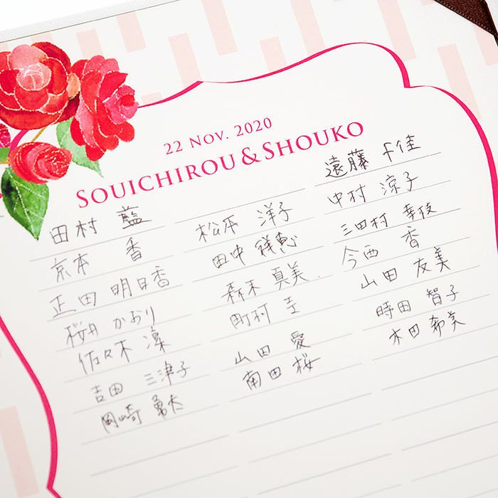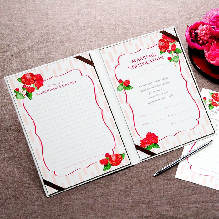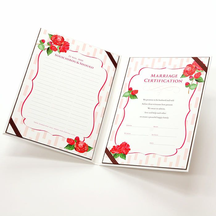 画像拡大 結婚証明書ゲスト参加型「つばき(51~102名様用)」 (0) 商品番号 MC-camellia 販売価格 ¥ 9,130 税込 [ 83 ポイント進呈 ] 出荷の目安 通常 出荷予定 特急対応(有料) 出荷予定 +地域別の到着目安はこちら +商品制作にデータのご提出が必要な商品ですご注文からお届けまでの流れ 送料 商品合計 ¥15,000円以上送料無料(北海道、沖縄、一部地域除く) +地域別の送料はこちら 項目を指定してカートに入れる 商品についてのお問い合わせ 文章(宣言)(必須) 選択してください A B C D(通信欄に入力ください) 特急オプション(必須) 選択してください 希望しない→納期5営業日 希望する→納期3営業日(+¥2,200 税込) 新郎様のお名前(例 Tetsuya)(必須) ※ : / ~ などの半角記号は使用不可 新婦様のお名前(例 Kyoko)(必須) ※ : / ~ などの半角記号は使用不可 挙式日(例 20XX.11.22)(必須) ※ : / ~ などの半角記号は使用不可 お気に入り登録 1 2 3 4 5 6 7 8 9 10+ カートに入れる 閉じる × これと似た商品を見る 結婚証明書ゲスト参加型 つばき ゲストにも参加いただく結婚の承認サイン。 人前式のお二人にピッタリの演出アイテムです。 結婚の宣言もお二人の言葉で入れれば 他にない、お二人だけのオリジナル結婚証明書になります。 右面:メッセージの文章タイプ(定型文またはオリジナル文) A We promise to be husband and wife before these witnesses here present. We swear to admire, love and help each other and to create a peaceful happy family. B 私たちは 今日ここにお集まりくださった 皆様の前で 生涯かわることなく お互いをいたわり合い 助け合い 楽しいことも 苦しいことも 二人で分かち合って 平和で幸せに満ちた 明るい家庭を築くことを誓います C 本日私たち二人は ご列席いただきました皆様を証人とし 夫婦としての約束を交わします 1.お互いを想いやる気持ちを決して忘れません 2.お互いの家族も大切にします 3.幸せや喜びを共に分かち合い 悲しみや苦しみは共に乗り越え 笑顔の絶えない家庭を築きます 今日の誓いを心に刻み お互いを永遠に愛することを誓います Dオリジナル オリジナル文章(200文字以内)※注文書の通信欄またはメールにご記入下さい ※オリジナル文章の句読点はデザインによりスペース等にさせていただく場合もございます ◆式に間に合わない! そんな方はこちら 結婚式に間に合わない…そんな方もご安心ください。ご注文時に特急オプション「希望する」をお選びの上、ご注文いただくとスピード対応いたします。※別途特急オプション料金が加算されます。 お届けの内容 結婚証明書…ホワイト1冊 証明シート(本人記帳用)…1枚 証明シート(ゲスト記帳用)…2枚 サイズ カバーサイズ197mm×266mm シートサイズ182mm×257mm 納期 5営業日(土日祝のぞく) 特急オプション「希望する」の場合は3営業日(土日祝のぞく) ※ただし、お支払いが銀行振込の場合はご入金確認後の手配となります お支払い方法 名入れ商品につき「代金引換」はお選びいただけません 関連商品の ご案内 写真追加プションお好きな写真を1点追加できます ゲスト参加型婚証明書専用ゲスト署名欄追加オプション レビューを書く