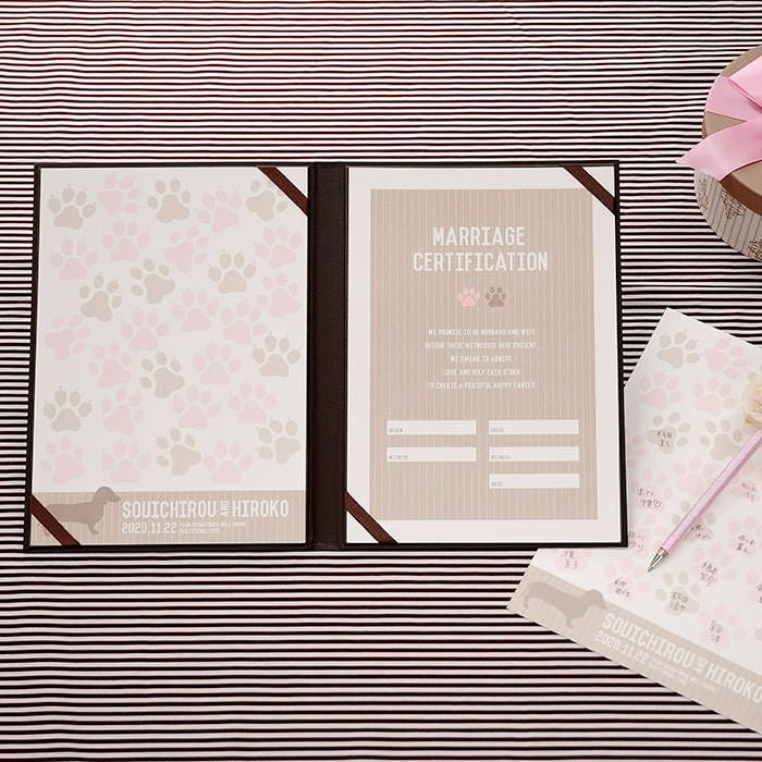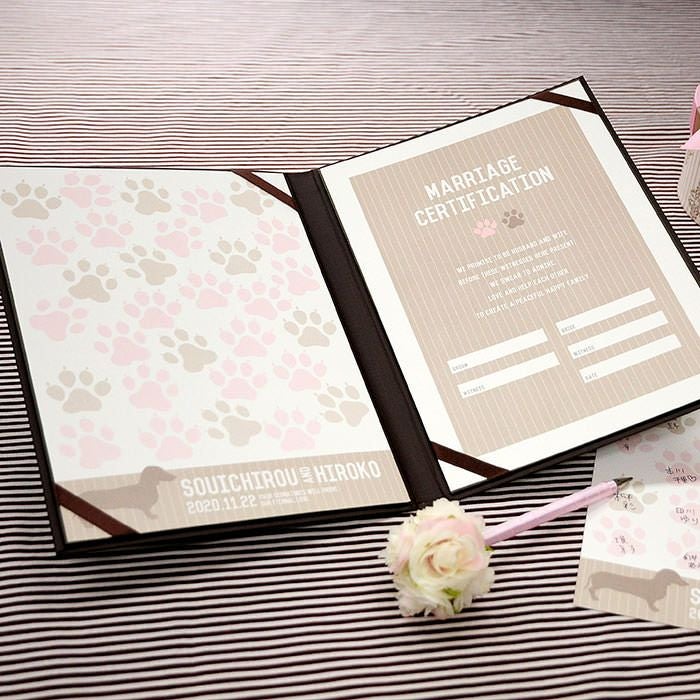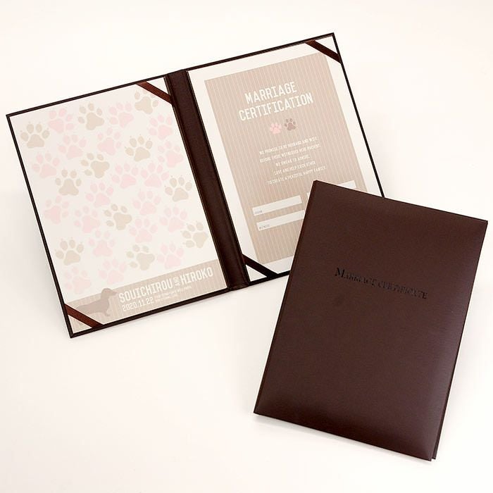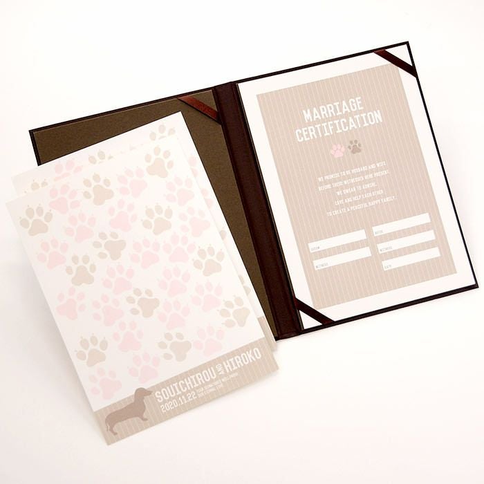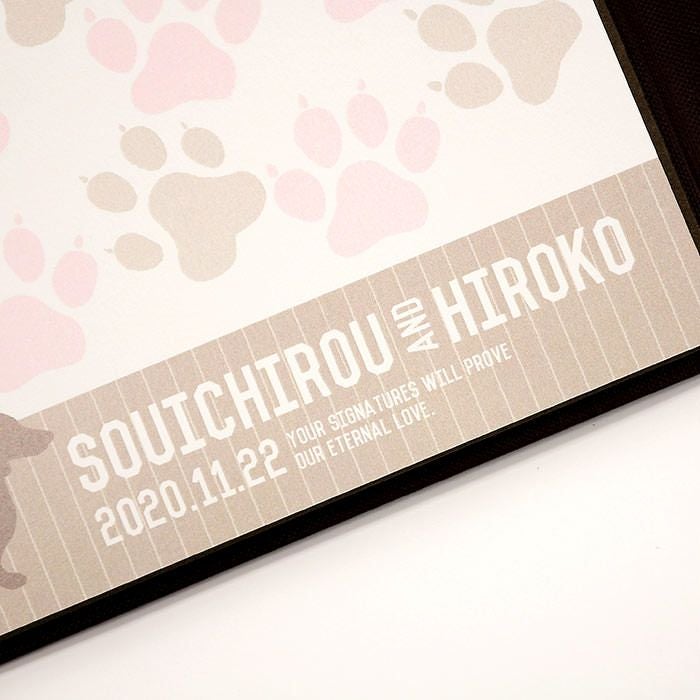 画像拡大 結婚証明書ゲスト参加型「にくきゅう ドッグ(犬)30~60名様用」 (0) 商品番号 MC-nikukyudog 販売価格 ¥ 9,130 税込 [ 83 ポイント進呈 ] 出荷の目安 通常 出荷予定 特急対応(有料) 出荷予定 +地域別の到着目安はこちら +商品制作にデータのご提出が必要な商品ですご注文からお届けまでの流れ 送料 商品合計 ¥15,000円以上送料無料(北海道、沖縄、一部地域除く) +地域別の送料はこちら 項目を指定してカートに入れる 商品についてのお問い合わせ 文章(宣言)(必須) 選択してください A B C D(通信欄に入力ください) 特急オプション(必須) 選択してください 希望しない→納期5営業日 希望する→納期3営業日(+¥2,200 税込) 新郎様のお名前(例 Tetsuya)(必須) ※ : / ~ などの半角記号は使用不可 新婦様のお名前(例 Kyoko)(必須) ※ : / ~ などの半角記号は使用不可 挙式日(例 20XX.11.22)(必須) ※ : / ~ などの半角記号は使用不可 お気に入り登録 1 2 3 4 5 6 7 8 9 10+ カートに入れる 閉じる × これと似た商品を見る 結婚証明書ゲスト参加型 にくきゅう ドッグ ゲストにも参加いただく結婚の承認サイン。 人前式のお二人にピッタリの演出アイテムです。 結婚の宣言もお二人の言葉で入れれば 他にない、お二人だけのオリジナル結婚証明書になります。 右面:メッセージの文章タイプ(定型文またはオリジナル文) A We promise to be husband and wife before these witnesses here present. We swear to admire, love and help each other and to create a peaceful happy family. B 私たちは 今日ここにお集まりくださった 皆様の前で 生涯かわることなく お互いをいたわり合い 助け合い 楽しいことも 苦しいことも 二人で分かち合って 平和で幸せに満ちた 明るい家庭を築くことを誓います C 本日私たち二人は ご列席いただきました皆様を証人とし 夫婦としての約束を交わします 1.お互いを想いやる気持ちを決して忘れません 2.お互いの家族も大切にします 3.幸せや喜びを共に分かち合い 悲しみや苦しみは共に乗り越え 笑顔の絶えない家庭を築きます 今日の誓いを心に刻み お互いを永遠に愛することを誓います Dオリジナル オリジナル文章(200文字以内)※注文書の通信欄またはメールにご記入下さい ※オリジナル文章の句読点はデザインによりスペース等にさせていただく場合もございます ◆式に間に合わない! そんな方はこちら 結婚式に間に合わない…そんな方もご安心ください。ご注文時に特急オプション「希望する」をお選びの上、ご注文いただくとスピード対応いたします。※別途特急オプション料金が加算されます。 お届けの内容 結婚証明書…ブラウン1冊 証明シート(本人記帳用)…1枚 証明シート(ゲスト記帳用)…2枚 サイズ カバーサイズ197mm×266mm シートサイズ182mm×257mm 納期 5営業日(土日祝のぞく) 特急オプション「希望する」の場合は3営業日(土日祝のぞく) ※ただし、お支払いが銀行振込の場合はご入金確認後の手配となります お支払い方法 名入れ商品につき「代金引換」はお選びいただけません 関連商品の ご案内 写真追加プションお好きな写真を1点追加できます ゲスト参加型婚証明書専用ゲスト署名欄追加オプション レビューを書く
