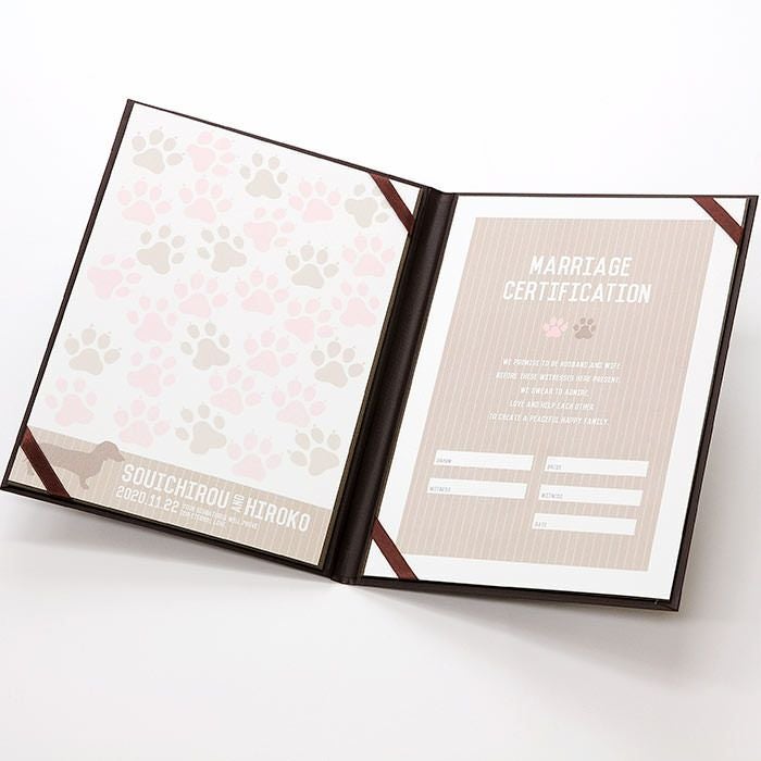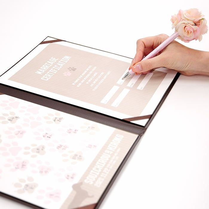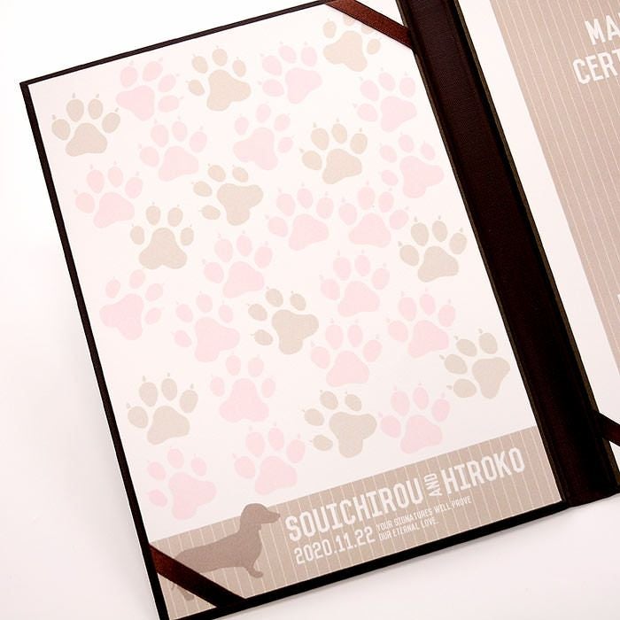 他の画像を見る 結婚証明書ゲスト参加型「にくきゅう ドッグ(犬)30~60名様用」 (0) 販売価格 ¥ 9,130 税込 商品について 閉じる ワンちゃん好きのカップルにぴったりなゲスト参加型の結婚証明書。ゲストがサインをすることで、二人の誓いを見守る大切な証となります。ゲストの署名欄は可愛らしい肉球デザイン。誓いの言葉は定型文から選べるほか、オリジナルの宣誓文で作成可能なので、二人だけの特別な誓いを形にできます。60名様までゲストの署名が可能。オプションで追加も可能です。 詳細を見る お気に入り登録