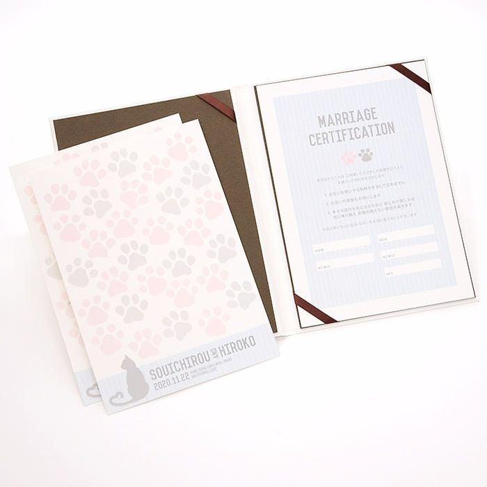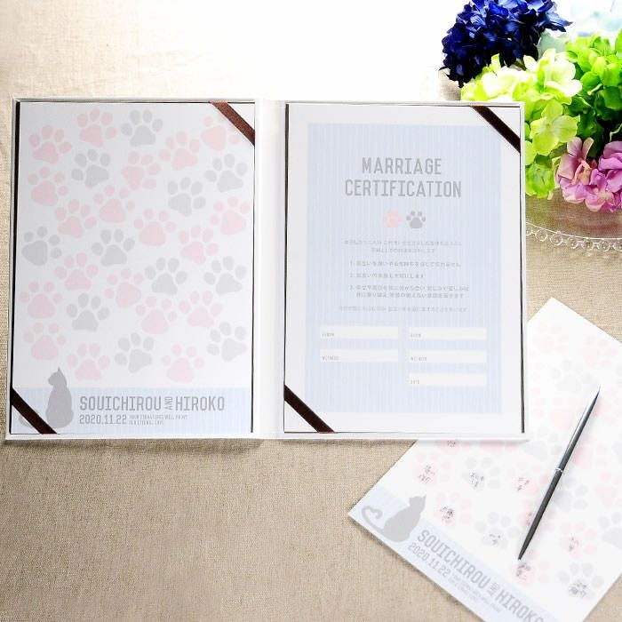 他の画像を見る 結婚証明書ゲスト参加型「にくきゅう キャット(猫)」 (0) 販売価格 ¥ 9,130 税込 商品について 閉じる 猫ちゃん好きのカップルにぴったりなゲスト参加型の結婚証明書。ゲストがサインをすることで、二人の誓いを見守る大切な証となります。ゲストの署名欄は可愛らしい肉球デザイン。誓いの言葉は定型文から選べるほか、オリジナルの宣誓文で作成可能なので、二人だけの特別な誓いを形にできます。60名様までゲストの署名が可能。オプションで追加も可能です。 詳細を見る お気に入り登録