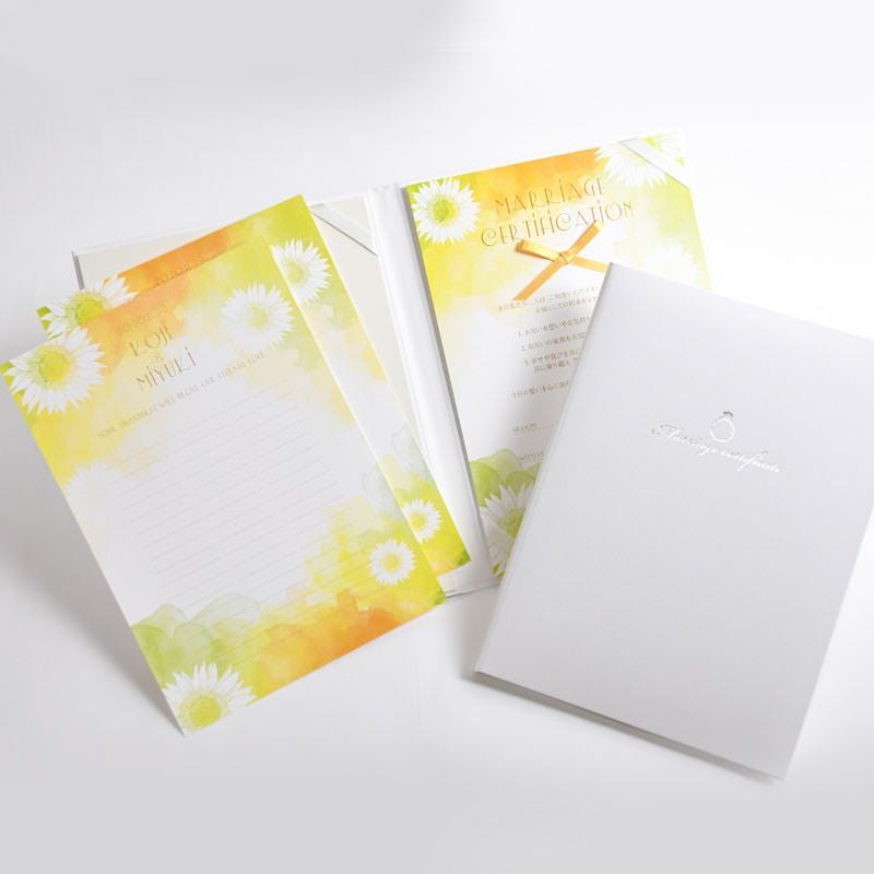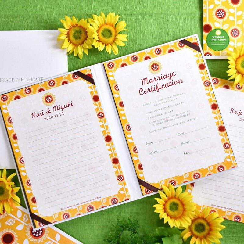 【ひまわり&手足形入り】夏婚にもピッタリの向日葵結婚証明書