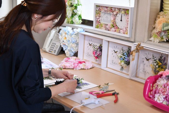 おしゃれで可愛いお花をたっぷりしきつめたフォトフレーム子育て感謝状。写真を自由に入れ替え可能。自分で好きな写真をセットして贈れます。アレンジされているのは、美しく高品質なアーティフィシャルフラワー。いつまでも華やかに飾っていただけます。