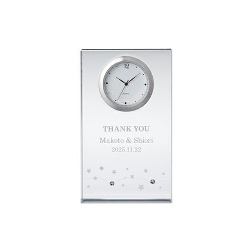 画像拡大 別配送K商品のみ同時購入可 三つの絆から生まれた奇跡、いつまでも輝き続ける家族でありたい ペルメール・ザ・クリスタル 繋がる星の輝き時計 /両親プレゼントペルメール [別配送K] (0) 商品番号 pmr6-10-J078 特別価格 定価 ¥ 43,780 のところ 販売価格 ¥ 39,402 税込 [ 358 ポイント進呈 ] 商品配送の目安 通常 出荷予定 特急対応(有料) 出荷予定 項目を指定してカートに入れる 同時購入不可(同梱不可)商品とは? メーカー直送・別配送のため、異なる配送グループの他商品とは、同時に購入いただけません。※他商品と同時にカートに入れると同時購入不可のメッセージが表示され、ご注文手続きに進むことができませんのでご注意ください。 同時購入(同梱)が可能な商品一覧はこちら ▶ 商品合計 ¥15,000円以上送料無料(北海道、沖縄、一部地域除く) 商品についてのお問い合わせ クイックサービス(納期2週間→約1週間で発送)(必須) 選択してください 利用しない(+¥0 税込) 利用する(+¥3,300 税込) 新郎様のお名前(例 Tetsuya)(必須) ※ : / ~ などの半角記号は使用不可 新婦様のお名前(例 Kyoko)(必須) ※ : / ~ などの半角記号は使用不可 挙式日(例 20XX.11.22)(必須) ※ : / ~ などの半角記号は使用不可 お気に入り登録 1 2 3 4 5 6 7 8 9 10+ カートに入れる 閉じる × 線で繋がれ、きらりと輝くラインストーンは、ご夫婦になられたおふたりを表しています。星たちが三連に繋がり、ご両家がひとつの家族になったことの証となります。 時計の下へ、英文(固定)・新郎新婦様のお名前と日付が入ります。 新郎新婦用へは「PROMISE」(約束)、両親贈呈用(2点)へは「THANK YOU」(ありがとう)の英文が入ります。 こちらの専用BOXに1つ1つ丁寧に入れてお送りします。 ペルメール・ザ・クリスタル 繋がる星の輝き時計 三つの絆から生まれた奇跡、いつまでも輝き続ける家族でありたい。 巡り逢い一つの家族になる奇跡。そんな奇跡のように三つの絵が繋がる時計。大切な日の記念に、クリスタルのように輝く三つの時計に想いを込めて。 お届けの内容 置き時計 3個(両親贈呈用×2個、新郎新婦用×1個) 材質 アクリル製、ラインストーン付き サイズ 商品サイズ:1個 30×60×100mm ×3BOXサイズ:1個 41×89×129mm ×3 納期目安 約14日(GW・お盆・年末年始除く) クイックサービスご利用で約1週間で発送 ※1週間以内のご注文はお受けいたしかねます。※ただし、お支払いが銀行振込の場合はご入金確認後の手配となります。 ご注意ください ※この商品は沖縄県・離島への配送はお受けしておりません。 ※メーカー直送品のため代引・他商品との同梱不可となります。 こちらもいかがですか? もっといろいろ比べたい! 両親プレゼントぜんぶ見る 結婚式での感謝をこめて お礼やお返しのギフトを♡ レビューを書く