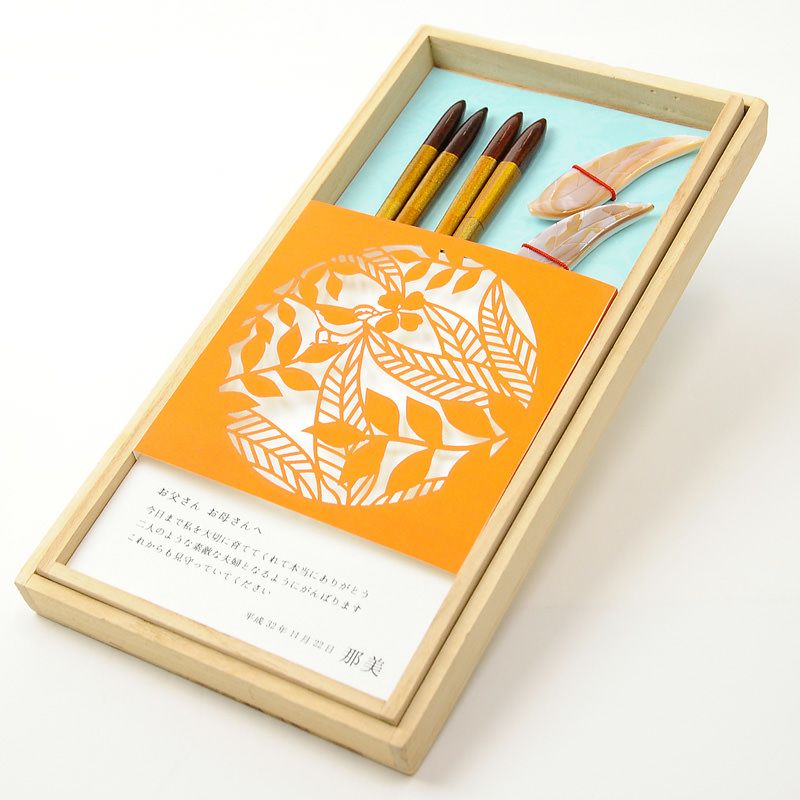 画像拡大 食洗機対応箸 【両親ギフト/夫婦箸】感謝状×箸カットデザイン「リーフオレンジ」 (0) 商品番号 KHC-003 販売価格 ¥ 12,100 税込 (1個あたりの価格です) [ 110 ポイント進呈 ] 出荷の目安 通常 出荷予定 特急対応(有料) 出荷予定 +地域別の到着目安はこちら +商品制作にデータのご提出が必要な商品ですご注文からお届けまでの流れ 送料 商品合計 ¥15,000円以上送料無料(北海道、沖縄、一部地域除く) +地域別の送料はこちら 項目を指定してカートに入れる 商品についてのお問い合わせ 宛名(必須) 選択してください お父さん お母さんへ お父さんへ お母さんへ 記載なし その他(→通信欄にご記入ください) 文章タイプ(必須) 選択してください A B C D(オリジナル文章→通信欄にご記入ください) 通信欄はカートに入れた後、ご注文手続き画面の最後のページにあります。 特急オプション(必須) 選択してください 希望しない→納期10営業日(+¥0 税込) 希望する→納期5営業日(+¥2,200 税込) ラッピングオプション(必須) 選択してください 希望しない 希望する(+¥330 税込) お名前(例 良太)(必須) ※ : / ~ などの半角記号は使用不可 挙式日(例 20XX.11.22)(必須) ※ : / ~ などの半角記号は使用不可 お気に入り登録 1 2 3 4 5 6 7 8 9 10+ カートに入れる 閉じる × これと似た商品を見る 【両親へのプレゼント】感謝箸カットデザイン「リーフオレンジ」 結婚式のご両親プレゼントで選ばれている箸の贈り物。2本で使う箸は“人と人を結ぶ縁起物”とされ、おめでたい日の記念品にもぴったり。桐箱のパッケージには、美しいカットデザインを重ねて華やかさをプラス。贈呈シーンにも映えます。 メッセージの文章タイプ(定型文またはオリジナル文) A 今日まで私を大切に育ててくれて本当にありがとう 二人のような素敵な夫婦となるようにがんばります これからも見守っていてください B 今日のこのすばらしい日を迎えることができたのも二人のおかげです どうぞいつまでも健康でいてください 本当にありがとう C 皆様に感謝の気持ちを忘れずに 今後も二人で力をあわせて幸せな家庭を築きます そして、一番のありがとうを二人に… D オリジナル文章(70文字以内) ※ご注文画面の通信欄にご記入下さい(複数ご注文の場合は、文章のあとに差出人名もご記入下さい) ※オリジナル文章の句読点はデザインによりスペース等にさせていただく場合もございます 文章中の「二人」という呼び名を変更する場合は、ご注文画面の通信欄またはメールにてご指示ください。※ご注文時に指定された文章からの変更をご希望される場合は、変更料金1,100円(税込)を頂戴します。 式に間に合わない!そんな方はこちら 挙式に間に合わない…そんな方もご安心ください。ご注文時に特急オプション「希望する」をお選びの上、ご注文いただくとスピード対応いたします。※別途特急オプション料金が加算されます。 両親贈呈品の理想が叶う!お箸を贈る魅力とは? お届けの内容 箸:2膳 箸置き:2個 サイズ 桐箱:280×143×23mm箸:230/210mm 箸置き:70×20mm 納期 10営業日(土日祝のぞく) 特急オプション「希望する」の場合は5営業日(土日祝のぞく) ※ただし、お支払いが銀行振込の場合はご入金確認後の手配となります 名入れについて 挙式日、お名前(差出人)をお入れしますカート部分にご記載ください(入力された内容がそのまま印刷されます) お支払い方法 名入れ商品につき「代金引換」はお選びいただけません 関連商品のご案内 文字レイアウトを 校正できます こちらもいかがですか? もっと比べたい! 両親プレゼントぜんぶ見る 可愛がってくれた 祖父母に贈る記念ギフト お届けの内容 箸:2膳 箸置き:2個 サイズ 桐箱:280×143×23mm箸:230/210mm 箸置き:70×20mm 納期 10営業日(土日祝のぞく) 特急オプション「希望する」の場合は5営業日(土日祝のぞく) ※ただし、お支払いが銀行振込の場合はご入金確認後の手配となります 名入れについて 挙式日、お名前(差出人)をお入れしますカート部分にご記載ください(入力された内容がそのまま印刷されます) お支払い方法 名入れ商品につき「代金引換」はお選びいただけません 関連商品のご案内 文字レイアウトを 校正できます こちらもいかがですか? もっと比べたい! 両親プレゼントぜんぶ見る 可愛がってくれた 祖父母に贈る記念ギフト レビューを書く 閲覧したアイテム 初めての方はまずはこちらをチェック! ファルべのペーパーアイテムをデザイン別にまとめました! シンプル ナチュラル 大人上品 メルヘン かっこいい・モダン 趣味・職業モチーフ 和風 季節モチーフ スポーツモチーフ シンプル ナチュラル 大人上品 メルヘン かっこいい・モダン 趣味・職業モチーフ 和風 季節モチーフ スポーツモチーフ \あなたにぴったりの雰囲気がきっと見つかる!/ 結婚式準備アイテムカテゴリ一覧 結婚式前に使うもの 顔合わせしおり 顔あわせ食事会記念品 招待状 ウェブ招待状 会場で使うもの 結婚証明書 ウェルカムボード・ウェルカムスペースセット 席次表 席