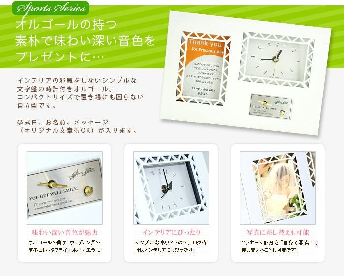 画像拡大 サンクスオルゴール(クロック)「バレーボール」/両親へのプレゼント (0) 商品番号 MB-O-cvolleyball 販売価格 ¥ 6,380 税込 (1個あたりの価格です) [ 58 ポイント進呈 ] 出荷の目安 通常 出荷予定 特急対応(有料) 出荷予定 +地域別の到着目安はこちら +商品制作にデータのご提出が必要な商品ですご注文からお届けまでの流れ 送料 商品合計 ¥15,000円以上送料無料(北海道、沖縄、一部地域除く) +地域別の送料はこちら 項目を指定してカートに入れる 商品についてのお問い合わせ 文章タイプ(必須) 選択してください A B C D(オリジナル文章→通信欄にご記入ください) 通信欄はカートに入れた後、ご注文手続き画面の最後のページにあります。 特急オプション(必須) 選択してください 希望しない→納期7営業日(+¥0 税込) 希望する→納期4営業日(+¥2,200 税込) ラッピング(白袋花柄タグ)(必須) 選択してください 希望しない ラッピング希望する(+¥275 税込) ラッピング+紙袋(大)希望する(+¥660 税込) お名前(例 良太)(必須) ※ : / ~ などの半角記号は使用不可 挙式日(例 20XX.11.22)(必須) ※ : / ~ などの半角記号は使用不可 お気に入り登録 1 2 3 4 5 6 7 8 9 10+ カートに入れる 閉じる × これと似た商品を見る 【両親へのプレゼント】サンクスオルゴール(時計付き)バレーボール 結婚式の贈呈シーンで渡す両親プレゼントに、インテリアにもぴったりのクロック付きオルゴールはいかが?オルゴールの音色が聞く人の心を温め、挙式後も当日の思い出に浸るひとときを演出します。 メッセージの文章タイプ(定型文またはオリジナル文) A 今日まで私を大切に育ててくれて本当にありがとう 二人のような素敵な夫婦となるようにがんばります これからも見守っていてください B 今日のこのすばらしい日を迎えることができたのも二人のおかげです どうぞいつまでも健康でいてください 本当にありがとう C 皆様に感謝の気持ちを忘れずに 今後も二人で力をあわせて幸せな家庭を築きます そして、一番のありがとうを二人に… D オリジナル文章(70文字以内) ※ご注文画面の通信欄にご記入下さい(複数ご注文の場合は、文章のあとに差出人名もご記入下さい) ※オリジナル文章の句読点はデザインによりスペース等にさせていただく場合もございます やさしいメロディが織りなす しあわせのとき ねじをまいてスイッチをいれると流れてくるやさしいメロディ。曲は結婚式にぴったりの木村カエラの「バタフライ」のワンフレーズ(約15秒分)をリピート。以下ボタンよりご視聴いただけます。 申し訳ございません。ご利用のブラウザでの再生には対応していません。 その他の曲をご希望の場合はオプション(有料)で変更することもできます。「オルゴール曲変更オプション」をあわせてお申し込みください。対応可能な曲は下記オプションページからご確認くださいませ。 オルゴール曲変更オプションはこちら 式に間に合わない!そんな方はこちら 挙式に間に合わない…そんな方もご安心ください。ご注文時に特急オプション「希望する」をお選びの上、ご注文いただくとスピード対応いたします。※別途特急オプション料金が加算されます。 お届けの内容 クロック付きオルゴール(自立型) オルゴール曲:バタフライ/木村カエラ(ワンフレーズ約15秒のリピート) サイズ 180×265×60mm 材質 ABS樹脂 納期 7営業日(土日祝のぞく) 特急オプション「希望する」の場合は4営業日(土日祝のぞく) ※ただし、お支払いが銀行振込の場合はご入金確認後の手配となります ご注文に際して 挙式日、お名前(差出人)をお入れしますカート部分にご記載ください(入力された内容がそのまま印刷されます) その他 ご自身でお写真を差し替えられる場合は、115×80mmでご用意ください 関連商品のご案内 文字レイアウトを 校正できます オルゴール曲を 変更できます こちらもいかがですか? もっと比べたい! 両親プレゼントぜんぶ見る 可愛がってくれた 祖父母に贈る記念ギフト レビューを書く