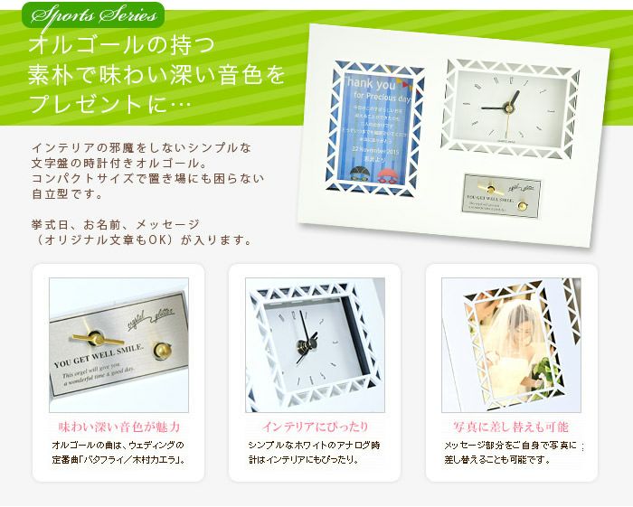 他の画像を見る 3個まとめ買い1000円OFF 3家族お揃い3点同時購入でオトク! フォトフレーム付き木製時計「アルベロ」|ご両親へのプレゼント (0) 販売価格 ¥ 14,300 税込 商品について 閉じる ぬくもりあふれるフォトフレーム付き木製時計です。あたたかみのある木の素材を使った時計にナチュラルリーフのデザインをレーザー彫刻で施し、挙式日と二人の名前をローマ字でさりげなく名入れ。写真もセットできるので、思い出を飾る実用的な両親贈呈品としておすすめです。 在庫切れ 詳細を見る お気に入り登録