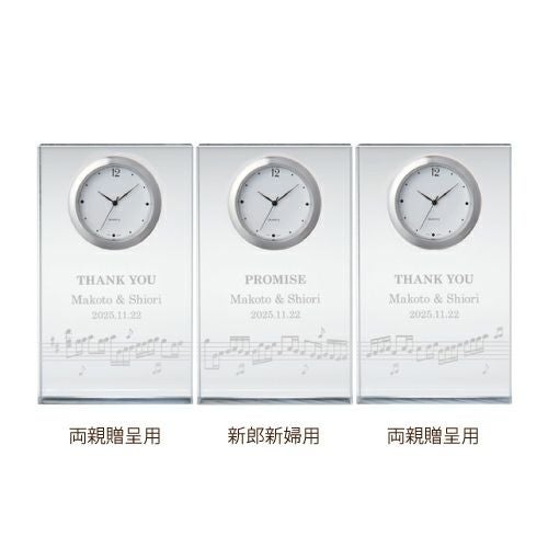 画像拡大 別配送K商品のみ同時購入可 三つの絆から生まれた奇跡、いつまでも輝き続ける家族でありたい ペルメール・ザ・クリスタル ハーモニー クロック ~家族三住奏~ /両親プレゼントペルメール [別配送K] (0) 商品番号 pmr6-10-J079 販売価格 ¥ 43,780 税込 [ 398 ポイント進呈 ] 商品配送の目安 通常 出荷予定 特急対応(有料) 出荷予定 項目を指定してカートに入れる 同時購入不可(同梱不可)商品とは? メーカー直送・別配送のため、異なる配送グループの他商品とは、同時に購入いただけません。※他商品と同時にカートに入れると同時購入不可のメッセージが表示され、ご注文手続きに進むことができませんのでご注意ください。 同時購入(同梱)が可能な商品一覧はこちら ▶ 商品合計 ¥15,000円以上送料無料(北海道、沖縄、一部地域除く) 商品についてのお問い合わせ クイックサービス(納期2週間→約1週間で発送)(必須) 選択してください 利用しない(+¥0 税込) 利用する(+¥3,300 税込) 新郎様のお名前(例 Tetsuya)(必須) ※ : / ~ などの半角記号は使用不可 新婦様のお名前(例 Kyoko)(必須) ※ : / ~ などの半角記号は使用不可 挙式日(例 20XX.11.22)(必須) ※ : / ~ などの半角記号は使用不可 お気に入り登録 1 2 3 4 5 6 7 8 9 10+ カートに入れる 閉じる × 時計に描かれた音符は、実はカノンの楽譜になっています。3つのパートを追唱する、結婚式によく使用されている楽曲です。出会いが重なり、ひとつの家族になることを表しています。 時計の下へ、英文(固定)・新郎新婦様のお名前と日付が入ります。 新郎新婦用へは「PROMISE」(約束)、両親贈呈用(2点)へは「THANK YOU」(ありがとう)の英文が入ります。 こちらの専用BOXに1つ1つ丁寧に入れてお送りします。 ペルメール・ザ・クリスタル ハーモニー クロック ~家族三住奏~ 三つの絆から生まれた奇跡、いつまでも輝き続ける家族でありたい。 巡り逢い一つの家族になる奇跡。そんな奇跡のように三つの絵が繋がる時計。大切な日の記念に、クリスタルのように輝く三つの時計に想いを込めて。 お届けの内容 置き時計 3個(両親贈呈用×2個、新郎新婦用×1個) 材質 アクリル製 サイズ 商品サイズ:1個 30×60×100mm ×3BOXサイズ:1個 41×89×129mm ×3 納期目安 約14日(GW・お盆・年末年始除く) クイックサービスご利用で約1週間で発送 ※1週間以内のご注文はお受けいたしかねます。※ただし、お支払いが銀行振込の場合はご入金確認後の手配となります。 ご注意ください ※この商品は沖縄県・離島への配送はお受けしておりません。 ※メーカー直送品のため代引・他商品との同梱不可となります。 こちらもいかがですか? もっといろいろ比べたい! 両親プレゼントぜんぶ見る 結婚式での感謝をこめて お礼やお返しのギフトを♡ レビューを書く