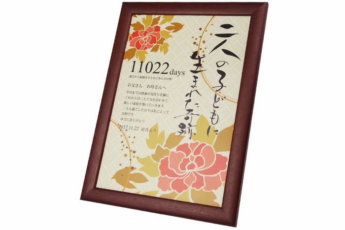他の画像を見る 「両親へのプレゼント」感謝ボードデザインコレクション「ぼたん」/メモリアルタイプ(日数入り) (0) 定価 ¥ 10,450 のところ 販売価格 ¥ 6,270 税込 商品について 閉じる ぼたんの花をデザインしたおしゃれな和風のデザイン。カスタマイズ可能なメッセージやカウント日数入りの子育て感謝状です。大きすぎず小さすぎず渡すにも飾るにもちょうどいいサイズ感。フレーム入りでインテリアとしてずっと飾れます。 詳細を見る お気に入り登録