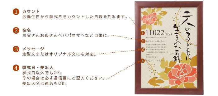 カウント日数を誕生日から挙式日までではなく、誕生日から入籍日に変更できたり、LINEでチャットできるなど不明点も解消しやすく商品だけでなくサービスにも満足です。他のお店にはない商品で大満足