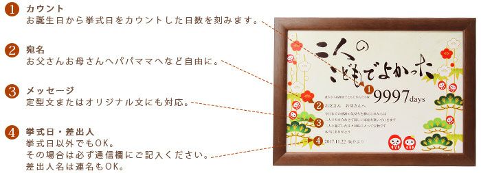 写真入り、日数入り、メッセージ入りなど特別感ある記念品は