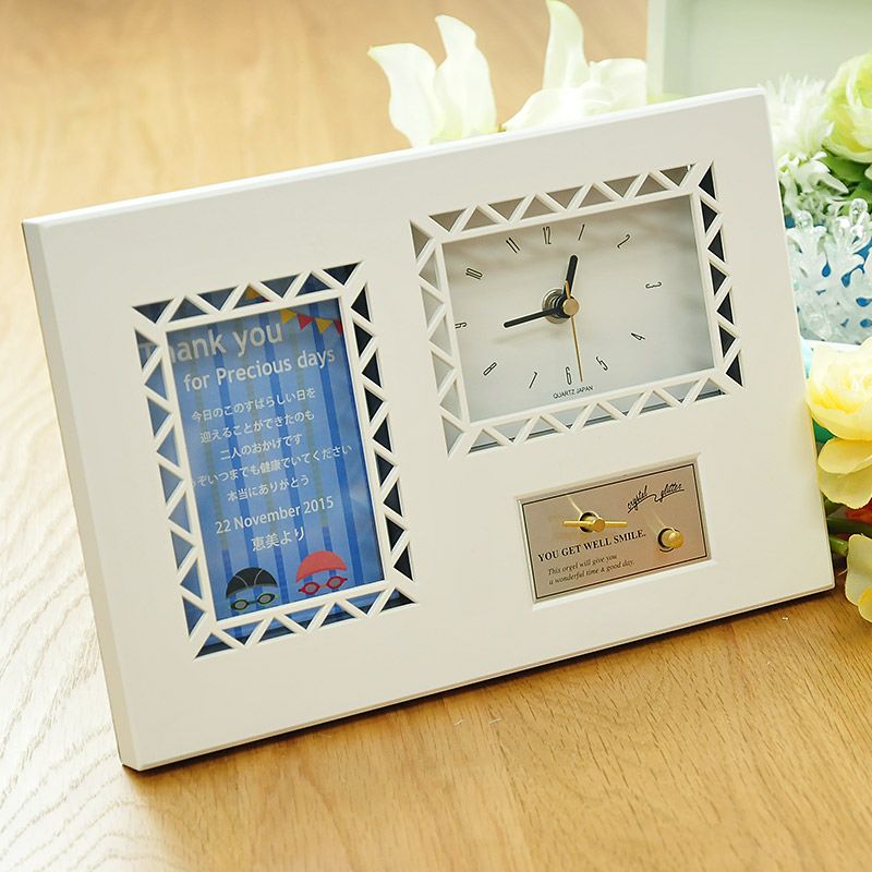 他のお店ではなかった丁度よいサイズですごく可愛かったです。普通に部屋で使って欲しかったので、名入れ等が沢山書いてあるものよりこのシンプルな時計にしました。このデザインかわいい。自分買いもしたくなる可愛さ