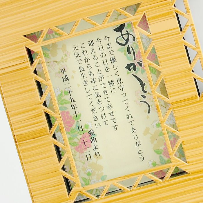 持ち帰りも便利、手のひらサイズ小さめ子育て感謝状。置き・掛け両用の2WAYスタイルで挙式後もインテリアとして飾りやすい。