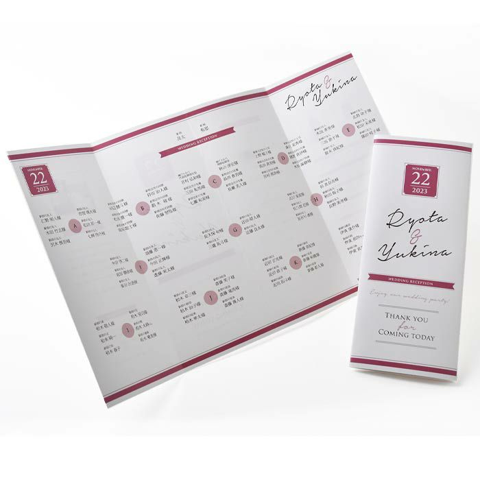 画像拡大 入力印刷付き シンプル&スタイリッシュ 【完全お任せ】ノーブル席次表(入力・印刷込) (0) 商品番号 OD-S-nb 定価 ¥ 880 のところ 販売価格 ¥ 770 税込 (1枚あたりの価格です) [ 7 ポイント進呈 ] 出荷の目安 ご注文後すぐ素材を提出いただいた場合 通常 出荷予定 特急対応(有料) 出荷予定 +地域別の到着目安はこちら +商品制作にデータのご提出が必要な商品ですご注文からお届けまでの流れ 送料 商品合計 ¥15,000円以上送料無料(北海道、沖縄、一部地域除く) +地域別の送料はこちら 30部以上の販売となります 項目を指定してカートに入れる 商品についてのお問い合わせ あわせて注文できるオプション お急ぎの時に特急オプション 30部未満のご注文が可能に ※事前確認・校正は【LINE】でも対応可能です。《校正専用LINE友だち登録》はこちらから。 ご購入後1営業日以内に届く承りメールでもご案内します。 カラー(必須) 選択してください ピンク ブルー お写真(必須) 選択してください お写真不要 お写真有り(3枚まで標準で入ります) お気に入り登録 1 2 3 4 5 6 7 8 9 10+ カートに入れる 閉じる × これと似た商品を見る 結婚式席次表「ノーブル席次表」完成品オーダー(入力印刷込) 同じデザインの招待状を見る 同じデザインの席札を見る どんなコーデにもあわせやすいシンプルでスタイリッシュなデザイン。パソコンやプリンターを持っていない方も安心なファルベの完成品オーダー席次表です。 結婚式をオシャレにする こだわりのデザイン すみずみまでオシャレな席次表。フォントやバランス、余白までこだわりぬいたデザインだから、シンプルで洗練された雰囲気がただよいます。カラーはピンク、ブルーの2色からお選びいただけます。 忙しい結婚準備 すべてプロにお任せ 席配置が決まる結婚式1カ月前は、あれもやらなきゃ、これもやらなきゃ!と一番いそがしい時。この席次表ならデータ作成・印刷・筋入れ・組み立てまで全部おまかせ。安心とハイクオリティが叶う完成品オーダーです。 内容も充実!オールインで理想が叶う 両観音開きで、ご挨拶文、プロフィール、メニュー表、新居のアドレス、など入れたいものが全部叶う仕様になっています。すみずみまでオシャレなだけじゃなくて内容も充実した席次表です。 カートに入れるボタンにジャンプする 長年の経験でたどりついた 絶妙なサイズ感 20年以上ブライダルペーパーアイテムを作ってきたファルベがたどりついたのが、A3より小さくB4より大きい257×420mm。小さすぎず、大きすぎず、様々なゲスト数に一番適したオリジナルサイズです。 一緒に注文が断然オススメ!お揃いの席札 おそろいデザインの席札もご用意しているのでトータルコーデが可能♡席札も検討中なら一緒に注文しておくのが断然おススメ。原稿の提出や校正のやりとりなども一度で済むから、面倒な手間もはぶけてラクチン! ※席次表と席札を同時注文の場合、席札の原稿提出・校正確認はございません。席次表と同じ敬称となります。 ノーブル席札はこちらから ファルベの印刷付席次表、ここが違います! 他社の安い印刷付席次表、でもよくよく内容をチェックしたら原稿は専用ソフトに打ち込んだり、やりとりはメールだけだったり、校正のやりとりに制限があったり…手間がかからないようで意外と不便に思うことも。ファルベなら手間なく安心してご注文いただけます♡ 既存システムに流し込むのではなく1件1件レイアウトしていくから、大人数対応や、テーブルをひし形に変形など様々なご要望に柔軟にお応えすることが可能です。 カートに入れるボタンにジャンプする ご注文からお届けまで まずはカートよりご注文ください。ご注文後、1営業日以内にファルベから原稿や素材提出期限日や提出先をメールでお知らせいたします。 素材(原稿)の準備・送付について 特急オプションで納期が半分に! お急ぎの場合は、クイック対応も可能です。特急オプションを使えば納期を半分に短縮できます。 ※これ以上の特急希望は必ず一度お問合せくださいませ。 特急オプションはこちら すごーいスピード対応!本当にあった席次表の話 そこが知りたい!オーダー席次表よくある質問 こんな時どうすればいいの?こんなコトできる?オーダー席次表のよくある質問はこちらから。気になるギモンをご注文前に解決! よくある質問を見る お届けの内容 席次表(入力・印刷込) 表:表紙、メニュー、挨拶文、新居案内、プロフィール 裏:座席表 サイズ 257×420mm 納期 原稿到着から10営業日(土日祝のぞく) ※ただし、お支払いが銀行振込の場合はご入金確認後の手配となります。 ※お急ぎの方は、特急オプションをあわせてご注文ください ⇒ 特急オプションはこちらから ご注文に際して ご注文は30部より承ります。 レイアウトはお任せいただきます(校正にてご確認頂けます) ※30部以下の方は、ロット割れオプションをあわせてご注文ください ⇒ ロット割れオプションはこちらから お支払い 名入れ商品につ