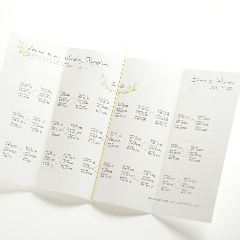 アウトドアをテーマとしていたので、ぴったりのデザインでした!!招待状と席札、席次表と統一出来たのでゲストからも可愛いと好評でした!!ありがとうございました!★★★★★