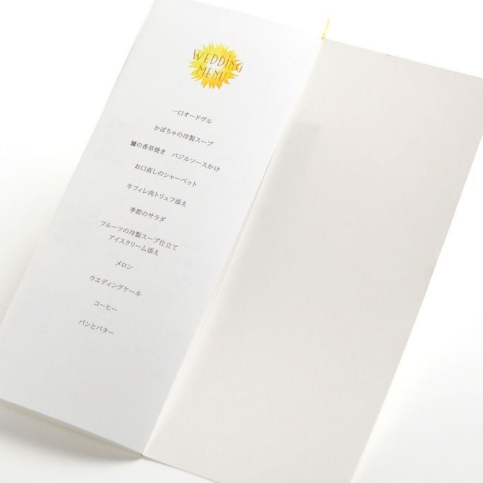 他の画像を見る 入力印刷付き 「ロッティエレナ」席次表完成品オーダー(入力・印刷込) (0) 定価 ¥ 880 のところ 販売価格 ¥ 748 税込 商品について 閉じる 上品な輝きをはなつパール台紙にゴールドのグラフィカルな英字を大胆に飾った華やかなデザイン。縦長のスッキリした定番スタイルで、中面にもおしゃれな文字と飾りが施され、結婚式にふさわしい高級感を演出します。 在庫切れ 詳細を見る お気に入り登録