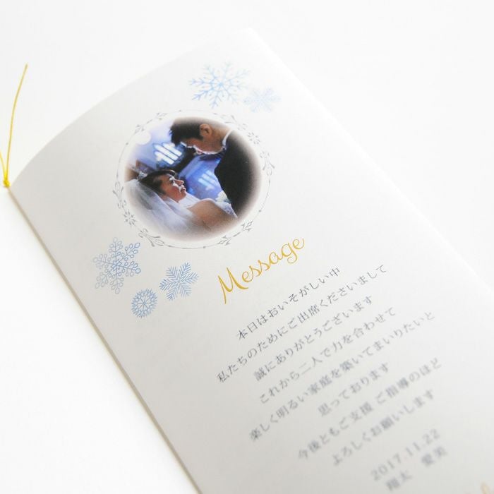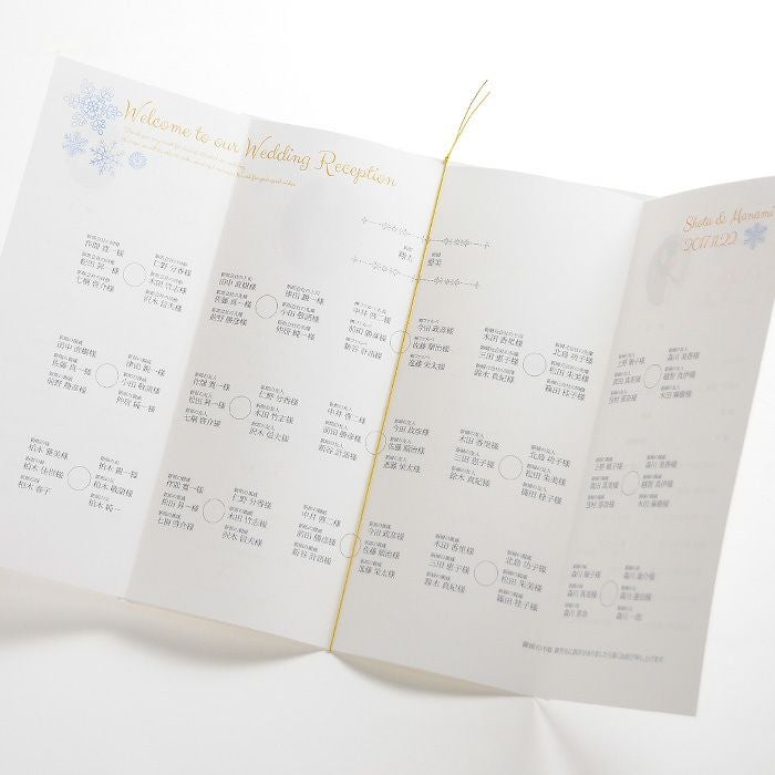 他の画像を見る 入力印刷付き 「ロッティスノー」席次表(入力・印刷込) (0) 定価 ¥ 880 のところ 販売価格 ¥ 748 税込 商品について 閉じる 上品な輝きをはなつパール台紙にゴールドのグラフィカルな英字を大胆に飾った華やかなデザイン。中面には水彩風の雪の結晶をあしらって季節感いっぱいに。冬の結婚式にぴったりなおしゃれな席次表です。 在庫切れ 詳細を見る お気に入り登録