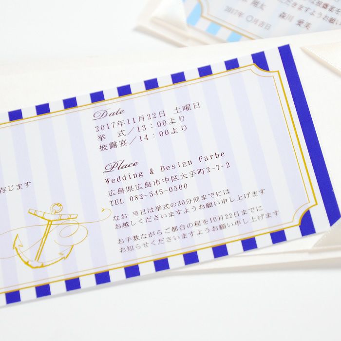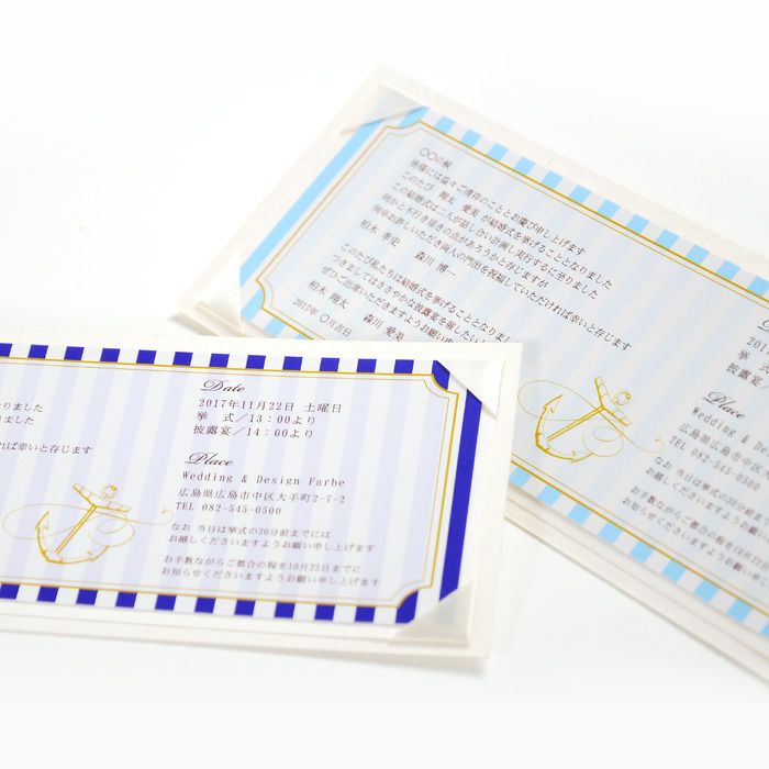 画像拡大 入力印刷付き 「マリーナ」結婚式招待状10部~(入力・印刷込) (0) 商品番号 OD-I-Marina 販売価格 ¥ 11,000 税込 〜 販売価格 ¥ 税込 [ 100 ポイント進呈 ] 〜 [ ポイント進呈 ] 出荷の目安 ご注文後すぐ素材を提出いただいた場合 通常 出荷予定 特急対応(有料) 出荷予定 +地域別の到着目安はこちら +商品制作にデータのご提出が必要な商品ですご注文からお届けまでの流れ 送料 商品合計 ¥15,000円以上送料無料(北海道、沖縄、一部地域除く) +地域別の送料はこちら 項目を指定してカートに入れる 商品についてのお問い合わせ あわせて注文できるオプション 予備用の封筒を追加 個別に案内付箋セット ※事前確認・校正は【LINE】でも対応可能です。《校正専用LINE友だち登録》はこちらから。 ご購入後1営業日以内に届く承りメールでもご案内します。 カラー(必須) 選択してください ライトブルー ネイビー 宛名印刷(筆耕)(必須) 選択してください 希望しない(+¥0 税込) 希望する(~10部まで)(+¥1,650 税込) 希望する(11部~20部まで)(+¥3,300 税込) 希望する(21部~30部まで)(+¥5,500 税込) 希望する(31部~40部まで)(+¥7,700 税込) 希望する(41部~50部まで)(+¥9,900 税込) 希望する(51部~60部まで)(+¥12,100 税込) 希望する(61部~70部まで)(+¥14,300 税込) 希望する(71部~80部まで)(+¥16,500 税込) 納期特急オプション(必須) 選択してください 希望しない→納期10営業日(+¥0 税込) 希望する→納期5営業日(+¥3,300 税込) 招待状部数 10部 ¥ 11,000 税込 20部 ¥ 11,000 税込 30部(1部@400円) ¥ 13,200 税込 40部(1部@400円) ¥ 17,600 税込 50部(1部@400円) ¥ 22,000 税込 60部(1部@400円) ¥ 26,400 税込 70部(1部@400円) ¥ 30,800 税込 80部(1部@400円) ¥ 35,200 税込 お気に入り登録 1 2 3 4 5 6 7 8 9 10+ カートに入れる 閉じる × これと似た商品を見る 結婚式招待状「マリーナ招待状 完成品オーダー」(印刷つき) デザインやディテールにこだわった結婚式の招待状 プロに任せて安心の印刷込み完成品オーダー ご注文からお届けまで まずはショッピングカートよりご注文を完了してください。その後、専用フォームより原稿のご提出をお願いいたします。 原稿アップロードフォームはこちら そこが知りたい!オーダー招待状よくある質問 こんな時どうすればいいの?こんなコトできる?オーダー招待状のよくある質問はこちらから。気になるギモンをご注文前に解決! よくある質問を見る お届けの内容 (1)招待状本状(台紙/中紙) (2)返信はがき(宛名印刷込) (3)封筒(差出人印刷込)※封筒に宛名印刷および切手は含まれません (4)封シール サイズ 本状台紙:約93mm×223mm 本状中紙:約80mm×210mm 返信はがき:100×148mm 封筒:120×235mm カラー ライトブルー・ネイビー 納期 原稿到着から10営業日(土日祝のぞく) ※ただし、お支払いが銀行振込の場合はご入金確認後の手配となります。 ※お急ぎの方は、特急オプションをあわせてご注文ください ご注文に際して ご注文は10部より承ります。 レイアウトはお任せいただきます(校正にてご確認頂けます) お支払い 名入れ商品につき「代金引換」はお選びいただけません。 ご注文後の流れ ご注文完了後、お早めに専用フォームより原稿をご送付ください。 ご注文→原稿送付→校正→印刷→商品発送 招待状原稿送付フォーム 封筒宛名印刷(筆耕)オーダーシートDL 一緒に注文できるオプション 中国語、韓国語英語、フランス語表記も 付箋セット親族紹介、挙式時間案内の付箋も 封筒追加オプション 予備用の封筒を追加 こちらもいかがですか? もっといろいろ比べたい!招待状ぜんぶ見る 早めの準備がオススメ両親プレゼント カートに入れるボタンにジャンプする お届けの内容 (1)招待状本状(台紙/中紙) (2)返信はがき(宛名印刷込) (3)封筒(差出人印刷込)※封筒に宛名印刷および切手は含まれません (4)封シール サイズ 本状台紙:約93mm×223mm 本状中紙:約80mm×210mm 返信はがき:100×148mm 封筒:120×235mm カラー ライトブルー・ネイビー 納期 原稿到着から10営業日(土日祝のぞく) ※ただし、お支払いが銀行振込の場合はご入金確認後の手配となります。 ※お急ぎの方は、特急オプションをあわせてご注文ください ご注文に際して ご注文は10部より承ります。 レイアウトはお任せいただきます(校正にてご確認頂けます) お支払い 名入れ商品につき「代金引換」はお選びいただけません。 ご注文後の流れ ご注文完了後、お早めに専用フォームより原稿をご送付ください。 ご注文→原稿送付→校正→印刷→商品発送 招待状原稿送付フォーム 封筒宛名印刷(筆耕)オーダーシートDL 一緒に注文できるオプション 中国語、韓国語英語、フランス語表記も 付箋セット親族紹介、挙式時間案内の付箋も 封筒追加オプション 予備用の封筒を追加 こちらもいかがですか? もっといろいろ比べたい!招待状ぜんぶ見る 早めの準備がオススメ両親プレゼント レビューを書く 閲覧したアイテム 初めての方はまずはこちらをチェック! ファルべのペーパーアイテムをデザイン別にまとめました! シンプル ナチュラル 大人上品 メルヘン かっこいい・モ