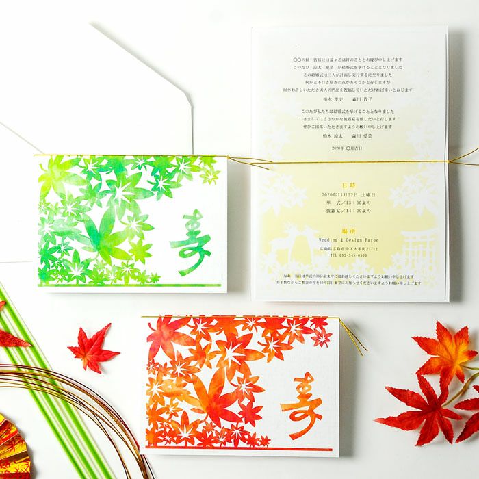 画像拡大 入力印刷付き 和ちゅらる婚「もみじ-紅葉」結婚式招待状10部~(入力・印刷込) 5.00 (1) 商品番号 od-i-momiji 販売価格 ¥ 9,900 税込 〜 販売価格 ¥ 税込 [ 90 ポイント進呈 ] 〜 [ ポイント進呈 ] 出荷の目安 ご注文後すぐ素材を提出いただいた場合 通常 出荷予定 特急対応(有料) 出荷予定 +地域別の到着目安はこちら +商品制作にデータのご提出が必要な商品ですご注文からお届けまでの流れ 送料 商品合計 ¥15,000円以上送料無料(北海道、沖縄、一部地域除く) +地域別の送料はこちら 項目を指定してカートに入れる 商品についてのお問い合わせ あわせて注文できるオプション 予備用の封筒を追加 個別に案内付箋セット ※事前確認・校正は【LINE】でも対応可能です。《校正専用LINE友だち登録》はこちらから。 ご購入後1営業日以内に届く承りメールでもご案内します。 カラー(必須) 選択してください 赤 若草 宛名印刷(筆耕)(必須) 選択してください 希望しない(+¥0 税込) 希望する(~10部まで)(+¥1,650 税込) 希望する(11部~20部まで)(+¥3,300 税込) 希望する(21部~30部まで)(+¥5,500 税込) 希望する(31部~40部まで)(+¥7,700 税込) 希望する(41部~50部まで)(+¥9,900 税込) 希望する(51部~60部まで)(+¥12,100 税込) 希望する(61部~70部まで)(+¥14,300 税込) 希望する(71部~80部まで)(+¥16,500 税込) 本状と台紙のお届けの状態(必須) 本状と台紙のセットをする/しないをお選びください 選択してください セット希望しない セット希望する(+¥2,200 税込) 納期特急オプション(必須) 選択してください 希望しない→納期10営業日(+¥0 税込) 希望する→納期5営業日(+¥3,300 税込) 招待状部数 10部 ¥ 9,900 税込 20部 ¥ 9,900 税込 30部(1部@385円) ¥ 11,550 税込 40部(1部@385円) ¥ 15,400 税込 50部(1部@385円) ¥ 19,250 税込 60部(1部@385円) ¥ 23,100 税込 70部(1部@385円) ¥ 26,950 税込 80部(1部@385円) ¥ 30,800 税込 お気に入り登録 1 2 3 4 5 6 7 8 9 10+ カートに入れる 閉じる × これと似た商品を見る 結婚式招待状「もみじ招待状 完成品オーダー」(印刷つき) ご注文からお届けまで まずはショッピングカートよりご注文を完了してください。その後、専用フォームより原稿のご提出をお願いいたします。 原稿アップロードフォームはこちら そこが知りたい!オーダー招待状よくある質問 こんな時どうすればいいの?こんなコトできる?オーダー招待状のよくある質問はこちらから。気になるギモンをご注文前に解決! よくある質問を見る お届けの内容 (1)招待状本状(台紙/中紙) (2)返信はがき(宛名印刷込) (3)封筒(差出人印刷込)※封筒に宛名印刷および切手は含まれません (4)封シール サイズ 本状台紙:約220×155mm(開いた状態で)約110×155mm(閉じた状態で)本状中紙:約210×148mm(開いた状態で)約105×148mm(閉じた状態で)返信はがき:100×148mm 封筒:120×175mm 納期 原稿到着から10営業日(土日祝のぞく) ※ただし、お支払いが銀行振込の場合はご入金確認後の手配となります。 ※お急ぎの方は、特急オプションをあわせてご注文ください ご注文に際して ご注文は10部より承ります。 レイアウトはお任せいただきます(校正にてご確認頂けます) お支払い 名入れ商品につき「代金引換」はお選びいただけません。 ご注文後の流れ ご注文完了後、お早めに専用フォームより原稿をご送付ください。 ご注文→原稿送付→校正→印刷→商品発送 招待状原稿送付フォーム 封筒宛名印刷(筆耕)オーダーシートDL 一緒に注文できるオプション 中国語、韓国語英語、フランス語表記も 付箋セット親族紹介、挙式時間案内の付箋も 封筒追加オプション 予備用の封筒を追加 こちらもいかがですか? もっといろいろ比べたい!招待状ぜんぶ見る 早めの準備がオススメ両親プレゼント カートに入れるボタンにジャンプする お届けの内容 (1)招待状本状(台紙/中紙) (2)返信はがき(宛名印刷込) (3)封筒(差出人印刷込)※封筒に宛名印刷および切手は含まれません (4)封シール サイズ 本状台紙:約220×155mm(開いた状態で)約110×155mm(閉じた状態で)本状中紙:約210×148mm(開いた状態で)約105×148mm(閉じた状態で)返信はがき:100×148mm 封筒:120×175mm 納期 原稿到着から10営業日(土日祝のぞく) ※ただし、お支払いが銀行振込の場合はご入金確認後の手配となります。 ※お急ぎの方は、特急オプションをあわせてご注文ください ご注文に際して ご注文は10部より承ります。 レイアウトはお任せいただきます(校正にてご確認頂けます) お支払い 名入れ商品につき「代金引換」はお選びいただけません。 ご注文後の流れ ご注文完了後、お早めに専用フォームより原稿をご送付ください。 ご注文→原稿送付→校正→印刷→商品発送 招待状原稿送付フォーム 封筒宛名印刷(筆耕)オーダーシートDL 一緒に注文できるオプション 中国語、韓国語英語、フランス語表記も 付箋セット親族紹介、挙式時間案内の付箋も 封筒追加オプション 予備用の封筒を追加 こちらもいかがですか? もっといろいろ比べたい!招待状ぜんぶ見る 早めの準備がオススメ両親プレゼント 5.00 1 かぼす 1 購入者 東京都 投稿日 2024/10/03 とて
