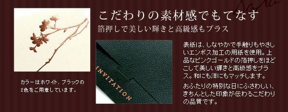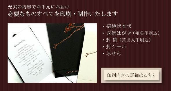 画像拡大 入力印刷付き 「紗羅(さら)」結婚式招待状10部~(入力・印刷込) 5.00 (3) 商品番号 OD-I-SR 販売価格 ¥ 9,900 税込 〜 販売価格 ¥ 税込 [ 90 ポイント進呈 ] 〜 [ ポイント進呈 ] 出荷の目安 ご注文後すぐ素材を提出いただいた場合 通常 出荷予定 特急対応(有料) 出荷予定 +地域別の到着目安はこちら +商品制作にデータのご提出が必要な商品ですご注文からお届けまでの流れ 送料 商品合計 ¥15,000円以上送料無料(北海道、沖縄、一部地域除く) +地域別の送料はこちら 項目を指定してカートに入れる 商品についてのお問い合わせ あわせて注文できるオプション 予備用の封筒を追加 個別に案内付箋セット ※事前確認・校正は【LINE】でも対応可能です。《校正専用LINE友だち登録》はこちらから。 ご購入後1営業日以内に届く承りメールでもご案内します。 カラー(必須) 選択してください ホワイト ブラック 宛名印刷(筆耕)(必須) 選択してください 希望しない(+¥0 税込) 希望する(~10部まで)(+¥1,650 税込) 希望する(11部~20部まで)(+¥3,300 税込) 希望する(21部~30部まで)(+¥5,500 税込) 希望する(31部~40部まで)(+¥7,700 税込) 希望する(41部~50部まで)(+¥9,900 税込) 希望する(51部~60部まで)(+¥12,100 税込) 希望する(61部~70部まで)(+¥14,300 税込) 希望する(71部~80部まで)(+¥16,500 税込) 本状と台紙のお届けの状態(必須) 本状と台紙のセットをする/しないをお選びください 選択してください セット希望しない セット希望する(+¥2,200 税込) 納期特急オプション(必須) 選択してください 希望しない→納期10営業日(+¥0 税込) 希望する→納期5営業日(+¥3,300 税込) 招待状部数 10部 ¥ 9,900 税込 20部 ¥ 9,900 税込 30部(1部@385円) ¥ 11,550 税込 40部(1部@385円) ¥ 15,400 税込 50部(1部@385円) ¥ 19,250 税込 60部(1部@385円) ¥ 23,100 税込 70部(1部@385円) ¥ 26,950 税込 80部(1部@385円) ¥ 30,800 税込 お気に入り登録 1 2 3 4 5 6 7 8 9 10+ カートに入れる 閉じる × これと似た商品を見る 結婚式招待状「紗羅(さら)招待状 完成品オーダー」(印刷つき) デザインやディテールにこだわった結婚式の招待状 プロに任せて安心の印刷込み完成品オーダー ご注文からお届けまで まずはショッピングカートよりご注文を完了してください。その後、専用フォームより原稿のご提出をお願いいたします。 原稿アップロードフォームはこちら そこが知りたい!オーダー招待状よくある質問 こんな時どうすればいいの?こんなコトできる?オーダー招待状のよくある質問はこちらから。気になるギモンをご注文前に解決! よくある質問を見る お届けの内容 (1)招待状本状(プリント用紙の色はホワイトとなります) (2)返信はがき(宛名印刷込) (3)封筒(差出人印刷込)※封筒に宛名印刷および切手は含まれません (4)封シール 納期 原稿到着から10営業日(土日祝のぞく) ※ただし、お支払いが銀行振込の場合はご入金確認後の手配となります。 ※お急ぎの方は、特急オプションをあわせてご注文ください ご注文に際して ご注文は10部より承ります。 レイアウトはお任せいただきます(校正にてご確認頂けます) お支払い 名入れ商品につき「代金引換」はお選びいただけません。 ご注文後の流れ ご注文完了後、お早めに専用フォームより原稿をご送付ください。 ご注文→原稿送付→校正→印刷→商品発送 招待状原稿送付フォーム 封筒宛名印刷(筆耕)オーダーシートDL 一緒に注文できるオプション 中国語、韓国語英語、フランス語表記も 付箋セット親族紹介、挙式時間案内の付箋も 封筒追加オプション 予備用の封筒を追加 こちらもいかがですか? もっといろいろ比べたい!招待状ぜんぶ見る 早めの準備がオススメ両親プレゼント カートに入れるボタンにジャンプする お届けの内容 (1)招待状本状(プリント用紙の色はホワイトとなります) (2)返信はがき(宛名印刷込) (3)封筒(差出人印刷込)※封筒に宛名印刷および切手は含まれません (4)封シール 納期 原稿到着から10営業日(土日祝のぞく) ※ただし、お支払いが銀行振込の場合はご入金確認後の手配となります。 ※お急ぎの方は、特急オプションをあわせてご注文ください ご注文に際して ご注文は10部より承ります。 レイアウトはお任せいただきます(校正にてご確認頂けます) お支払い 名入れ商品につき「代金引換」はお選びいただけません。 ご注文後の流れ ご注文完了後、お早めに専用フォームより原稿をご送付ください。 ご注文→原稿送付→校正→印刷→商品発送 招待状原稿送付フォーム 封筒宛名印刷(筆耕)オーダーシートDL 一緒に注文できるオプション 中国語、韓国語英語、フランス語表記も 付箋セット親族紹介、挙式時間案内の付箋も 封筒追加オプション 予備用の封筒を追加 こちらもいかがですか? もっといろいろ比べたい!招待状ぜんぶ見る 早めの準備がオススメ両親プレゼント 5.00 3 S 2 非公開 投稿日 2026/02/23 高級感があり季節感の合うデザインで大変気に入りました。 また、校正作業も丁寧に対応していただきありがとうございました。 プロの方に見て頂ける安心感や充実したテンプレ