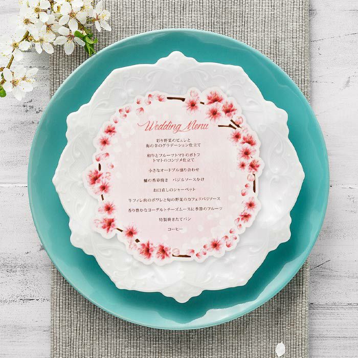 結婚式や二次会のメニュー表、テーブルの印象が華やぐおしゃれなデザインがたくさん!トレーシングやクリア素材を使った最新トレンドのデザインも充実。席札付きのメニュー表も人気です。